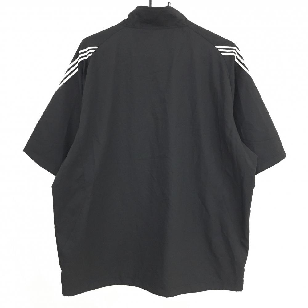 【超美品】アディダス 半袖ブルゾン 黒×白 ハーフジップ 3ライン ロゴ刺しゅう 裾ドローコード 裏地付 メンズ O/XG ゴルフウェア adidas