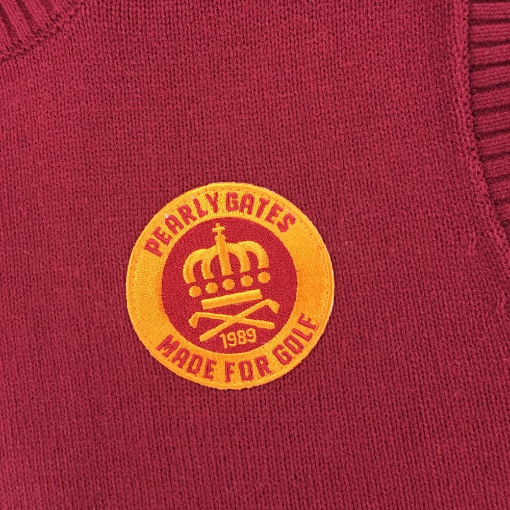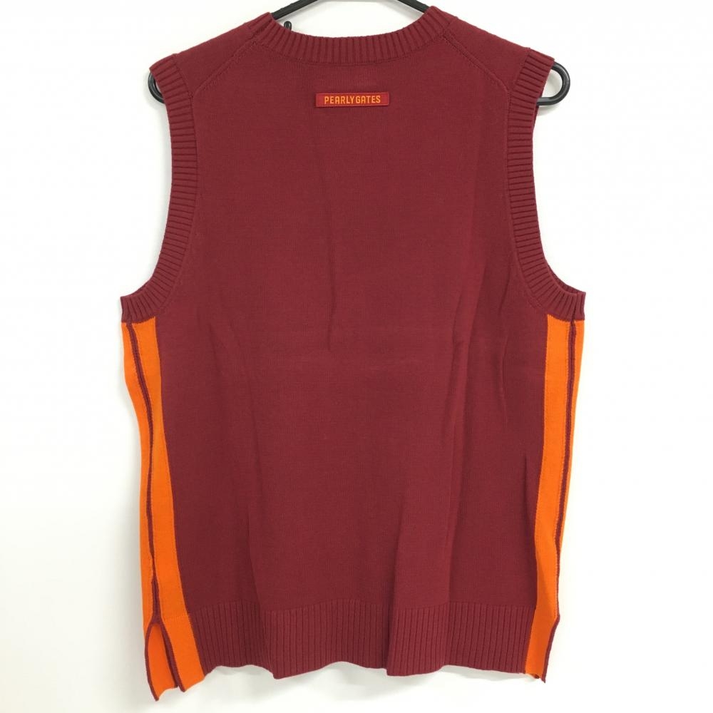 パーリーゲイツ ニットベスト ボルドー×オレンジ サイドライン コットン混 メンズ 5(L) ゴルフウェア PEARLY GATES