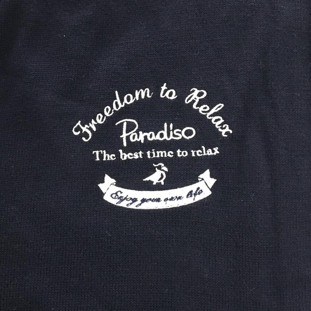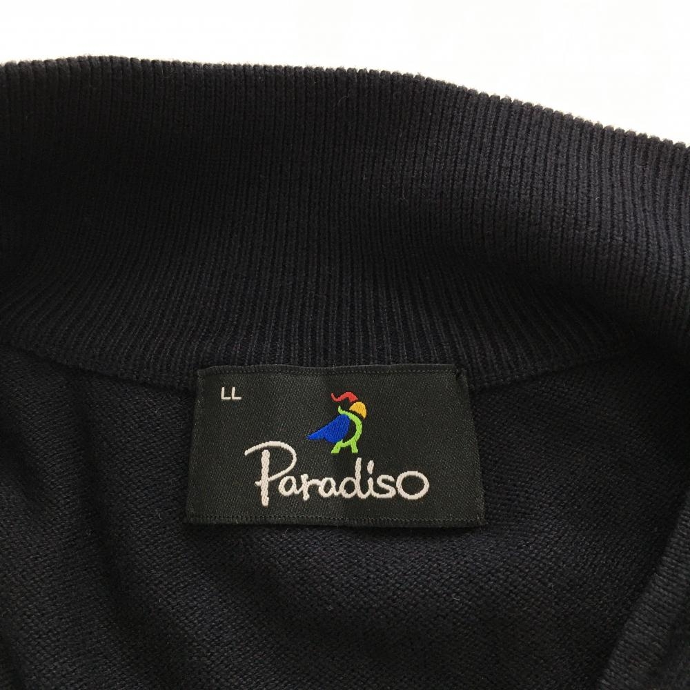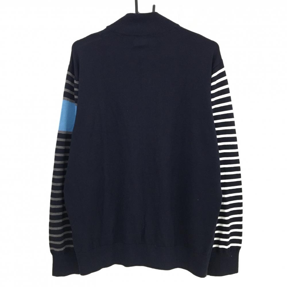 【超美品】パラディーゾ ニットジャケット ダークネイビー×白 一部ボーダー コットン混 メンズ LL ゴルフウェア Paradiso