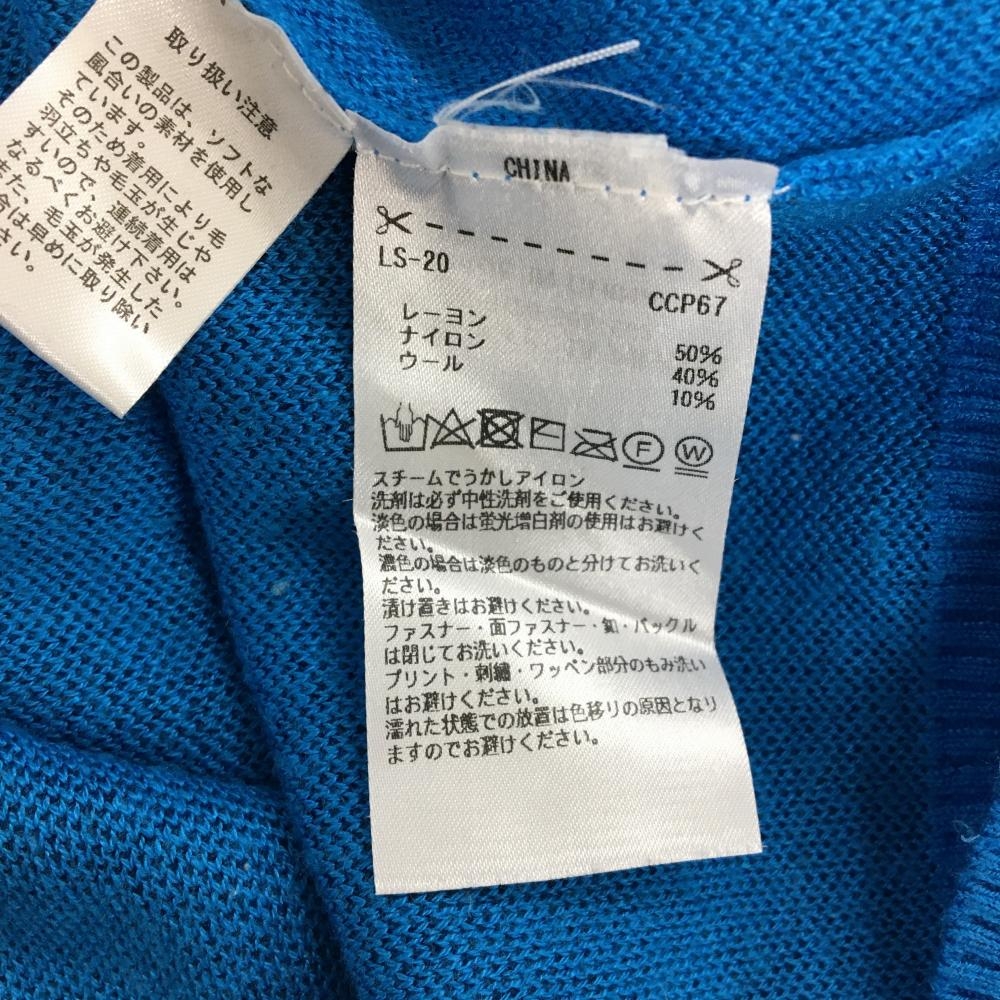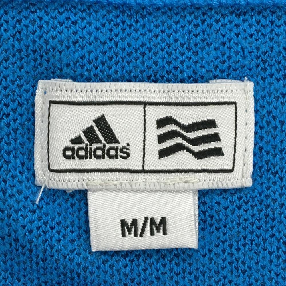 【美品】アディダス セーター ブルー 前面ボーダー編み ストレッチ ウール混 メンズ M/M ゴルフウェア adidas