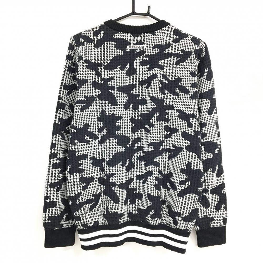 パーリーゲイツ セーター 白×ネイビー カモフラ グレンチェック ニット メンズ 5(L) ゴルフウェア PEARLY GATES
