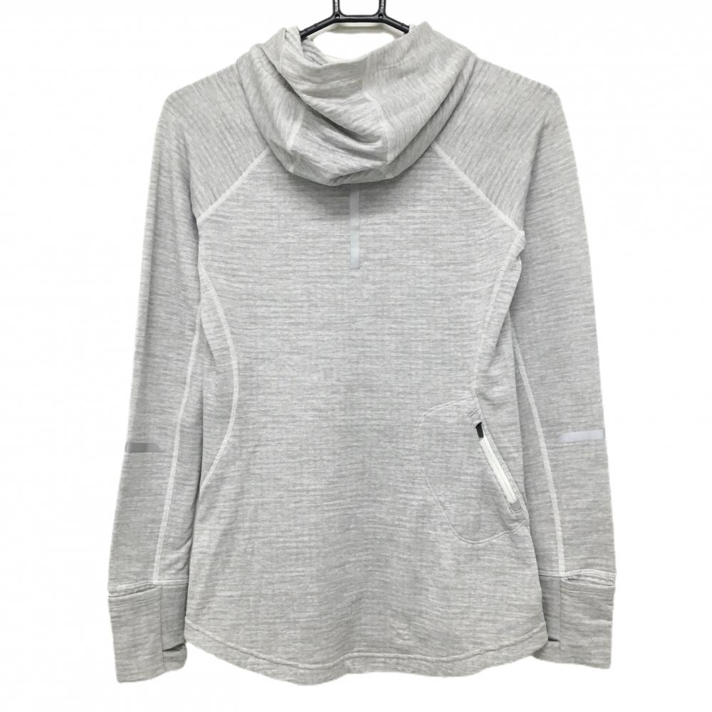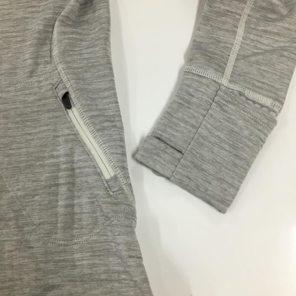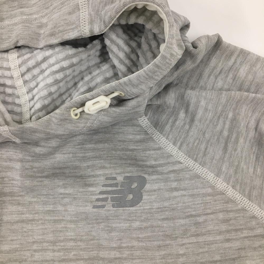【超美品】ニューバランス 長袖Tシャツ 杢ライトグレー パーカー風 ロゴ 裏微起毛 レディース S ゴルフウェア New Balance