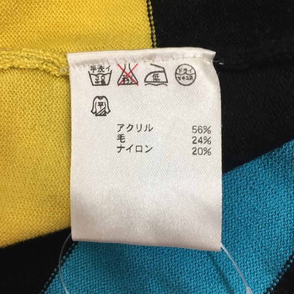 【超美品】フィラゴルフ タートルネックセーター ピンク×マルチカラー ボーダー ウール混 ニット レディース M ゴルフウェア FILA GOLF