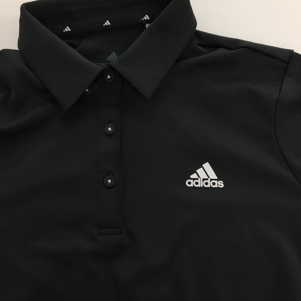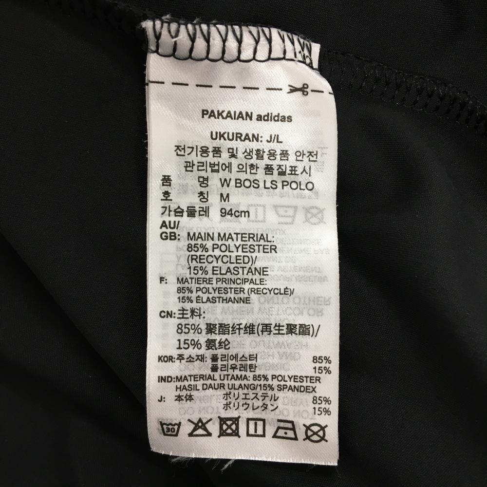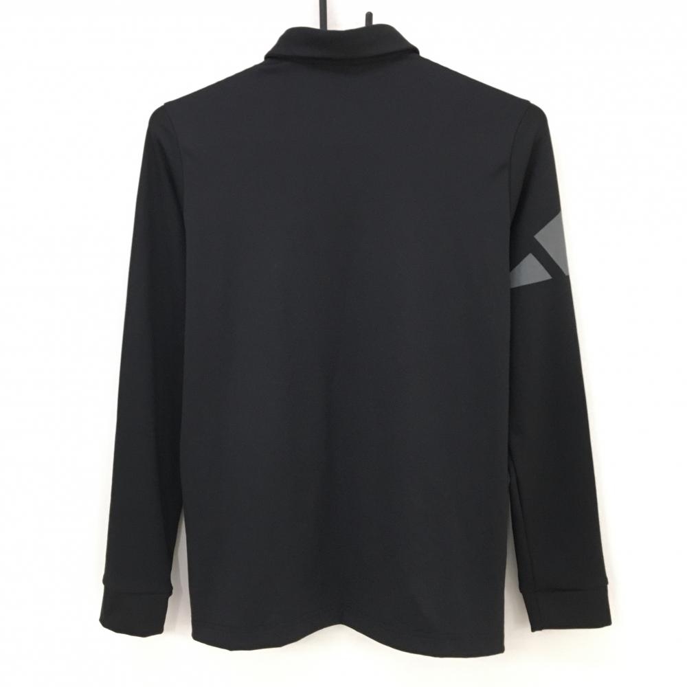 【超美品】アディダス 長袖ポロシャツ 黒×グレー ボタンダウン 袖ロゴプリント レディース L ゴルフウェア adidas