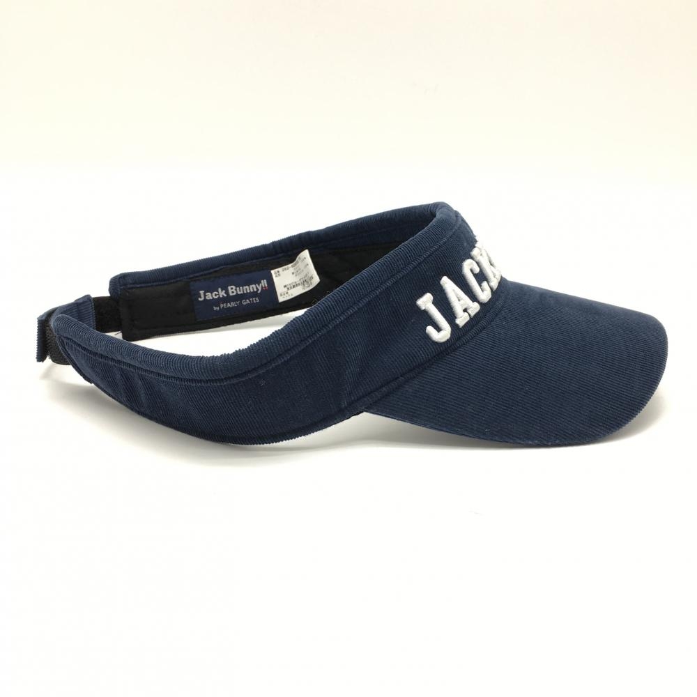 【美品】ジャックバニー サンバイザー ネイビー×白 コーデュロイ 立体ロゴ FR ゴルフウェア Jack Bunny