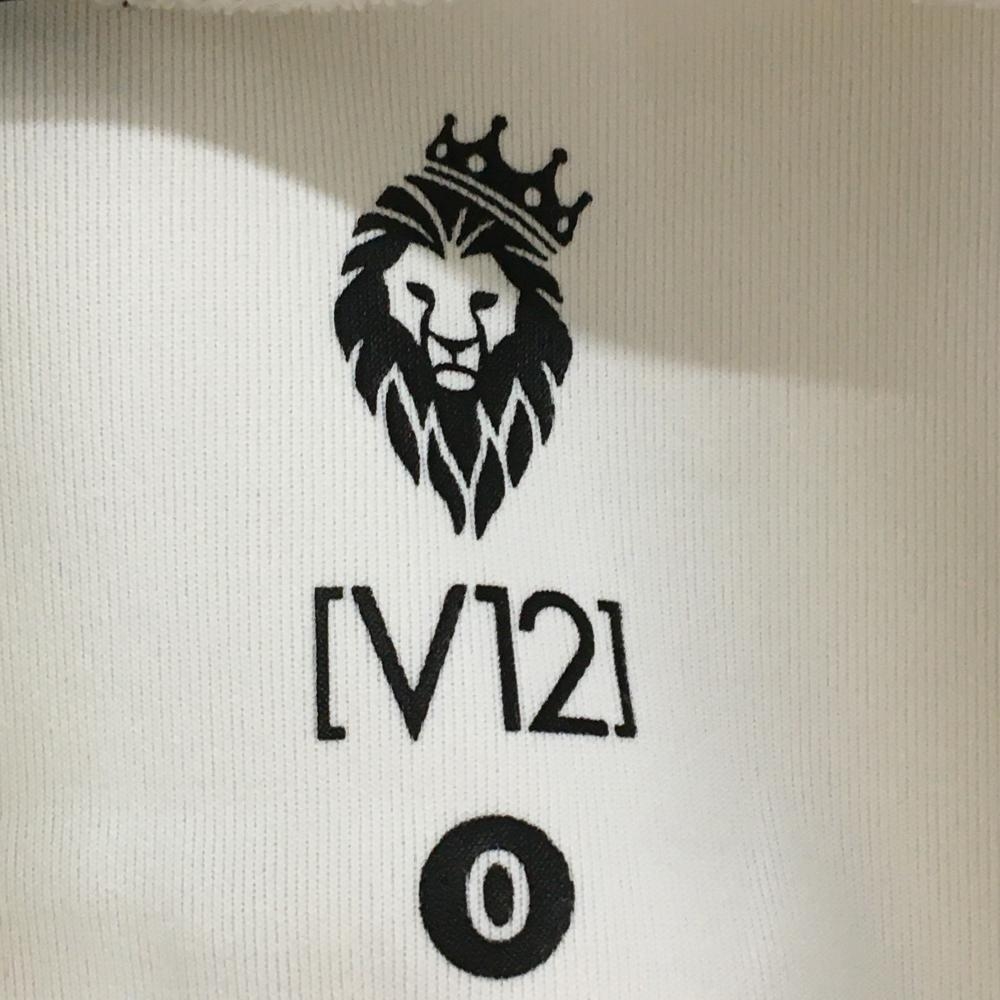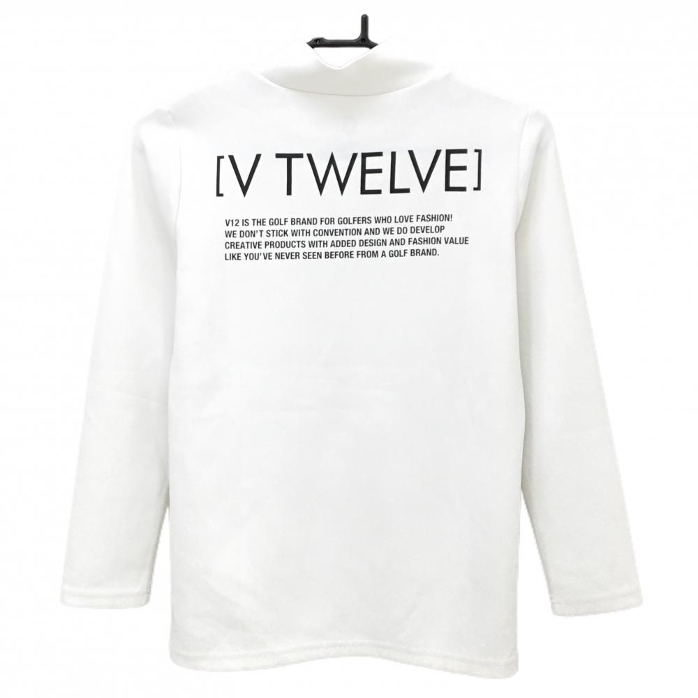 【美品】V12 長袖ハイネックシャツ 白 バックロゴプリント メンズ 0(S) ゴルフウェア V12