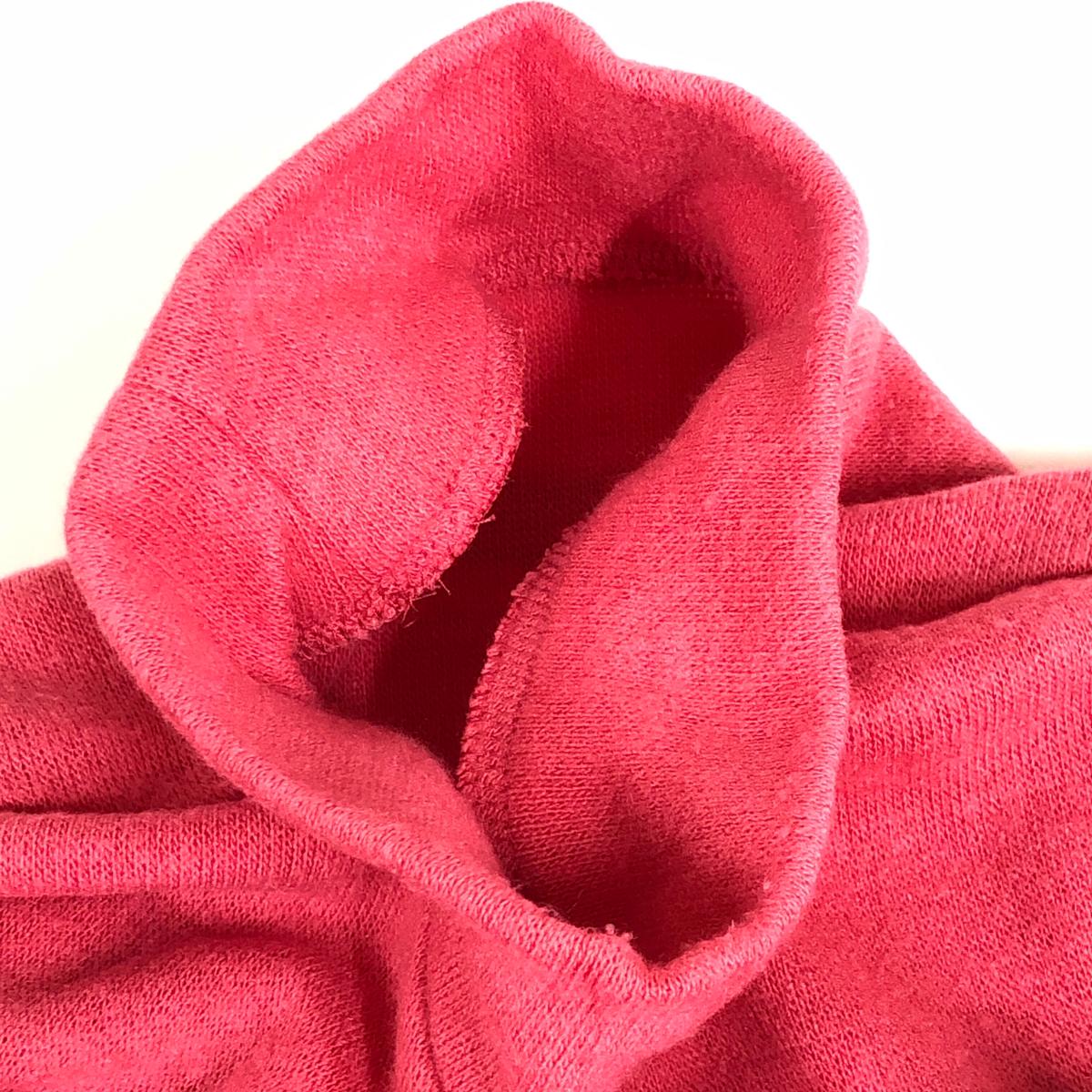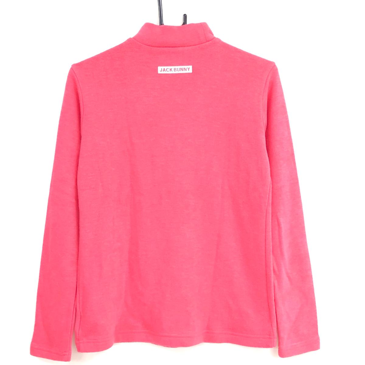 【美品】ジャックバニー 長袖ハイネックシャツ レッドピンク 表起毛 ロゴ白 ネック内側・袖口毛羽立ち少 レディース ゴルフウェア Jack Bunny