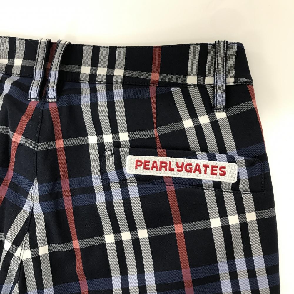 【超美品】パーリーゲイツ パンツ ダークネイビー×白×レッド チェック 裏微起毛 レディース 0(S) ゴルフウェア PEARLY GATES
