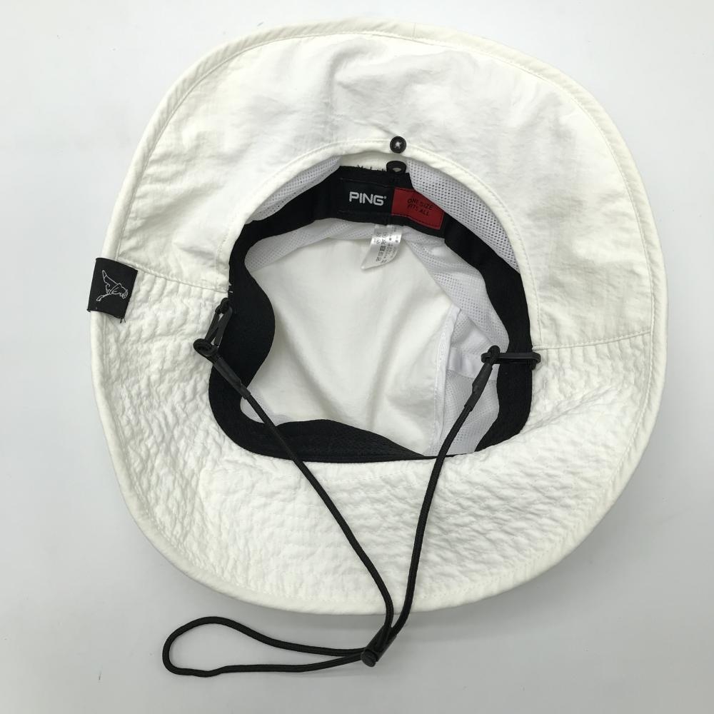 ピン ハット 白 立体ロゴ メッシュネックガード付き あご紐 ONE SIZE FITS ALL ゴルフウェア 2024年モデル PING