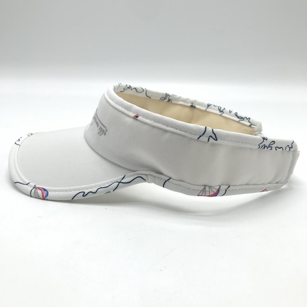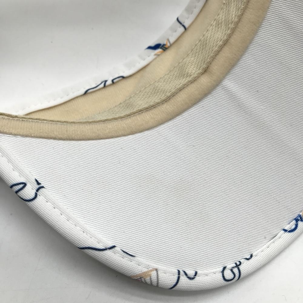 【美品】23区ゴルフ サンバイザー 白×ネイビー 縁柄 汗取りパッド付 F ゴルフウェア 23区