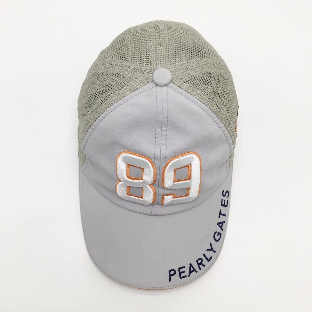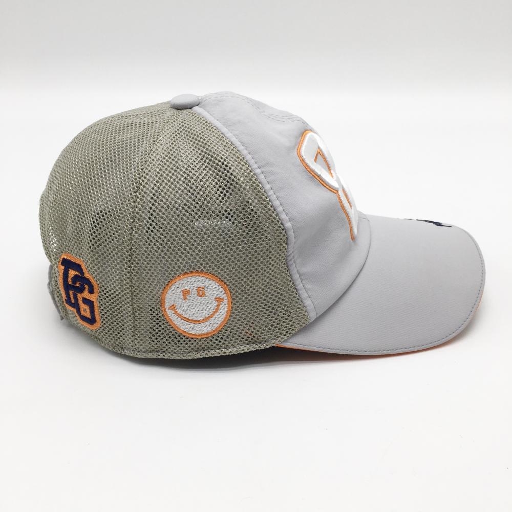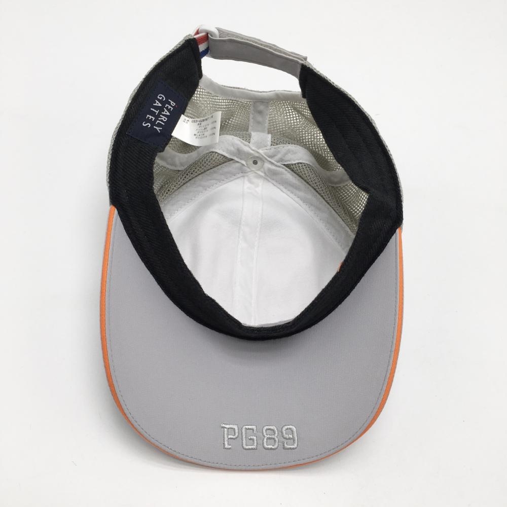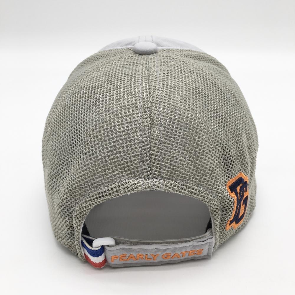 【美品】パーリーゲイツ メッシュキャップ ライトグレー×白×オレンジ ニコちゃん スマイル FR ゴルフウェア PEARLY GATES