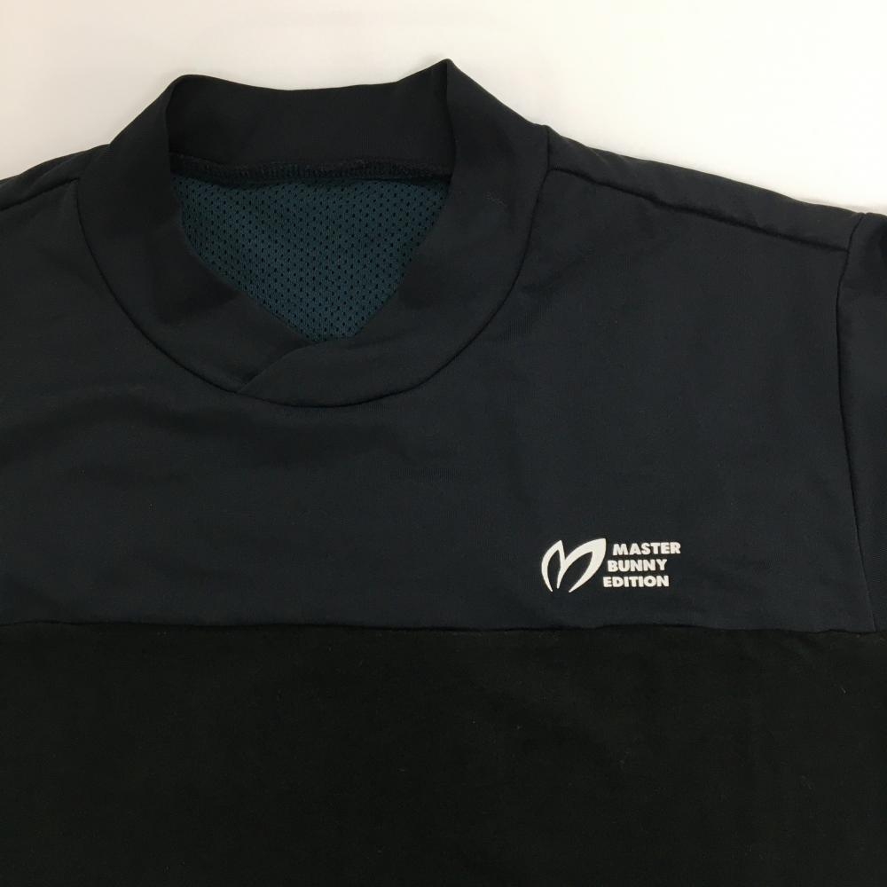 【超美品】マスターバニー 長袖ハイネックシャツ ダークネイビー×黒 異素材切り替え レディース 1(M) ゴルフウェア MASTER BUNNY EDITION