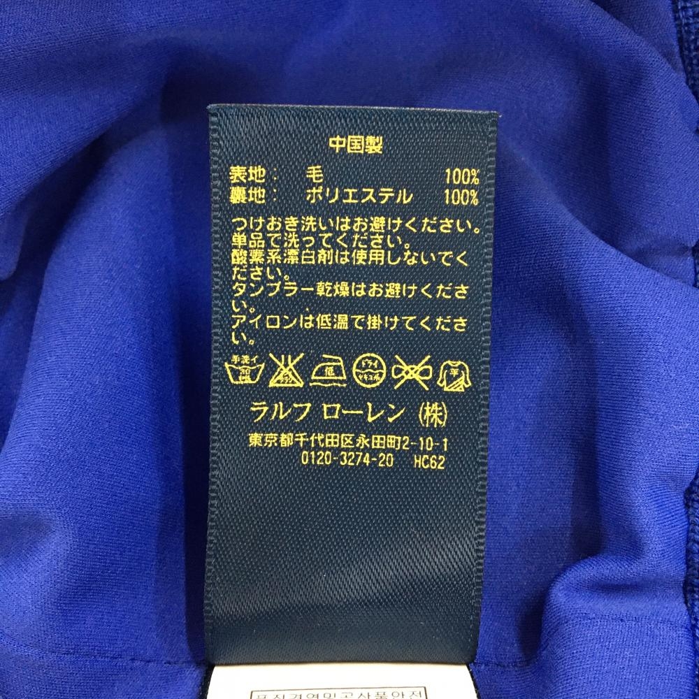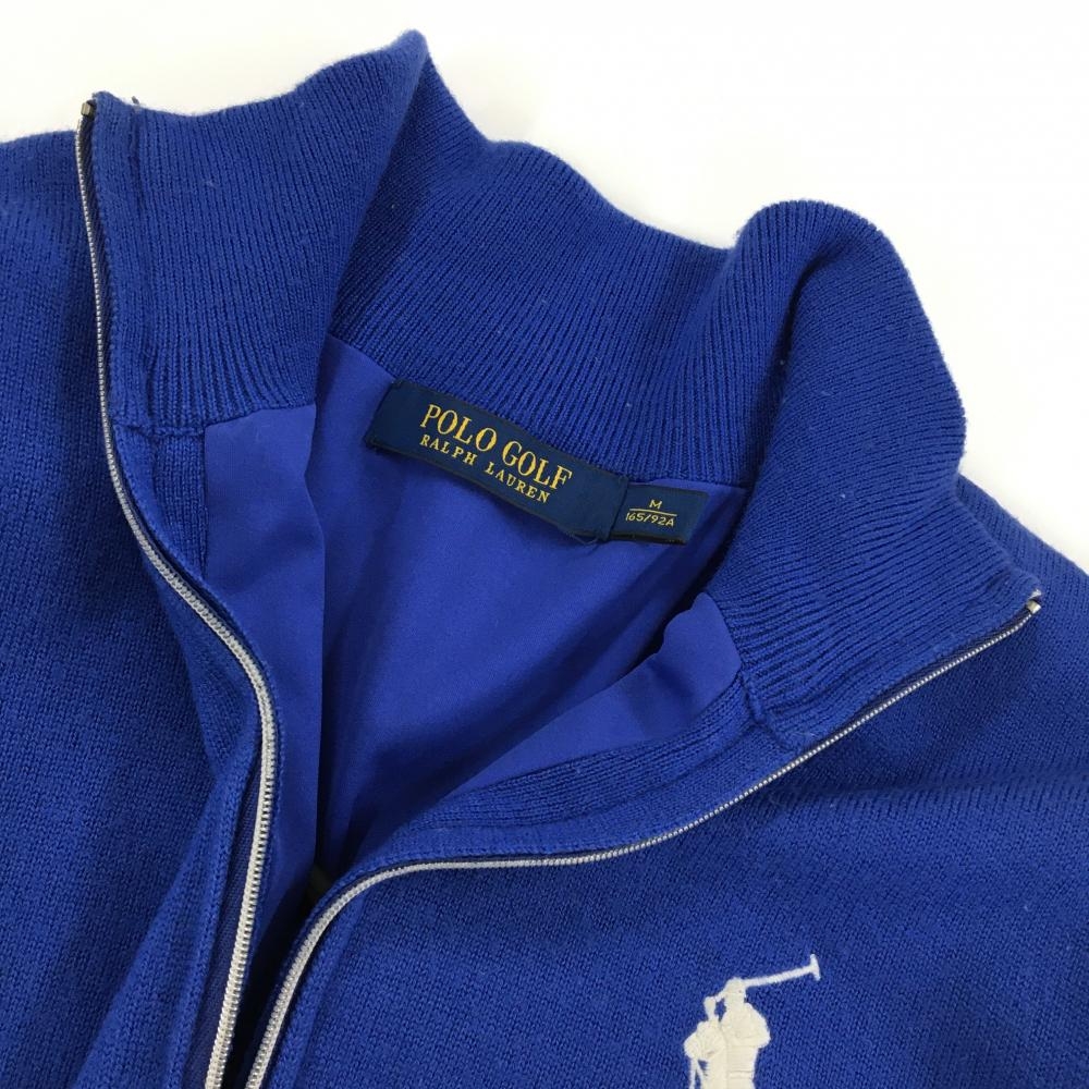 ポロゴルフ ハイネックセーター ブルー×白 ハーフジップ 裏地付 胸ロゴ ウール混 レディース M ゴルフウェア Ralph Lauren