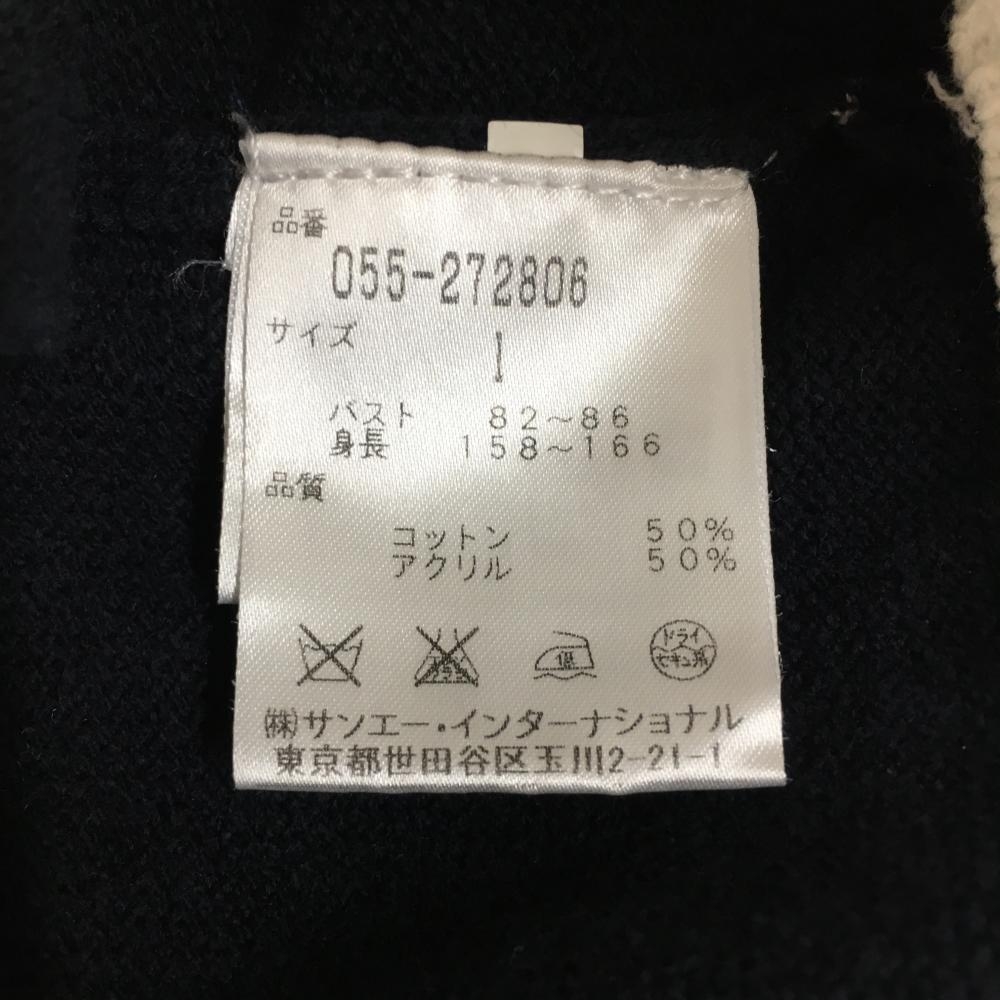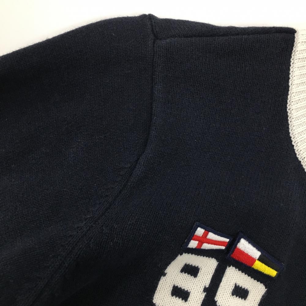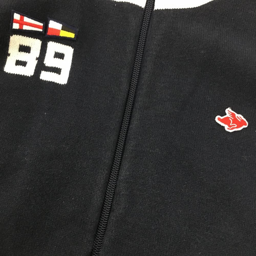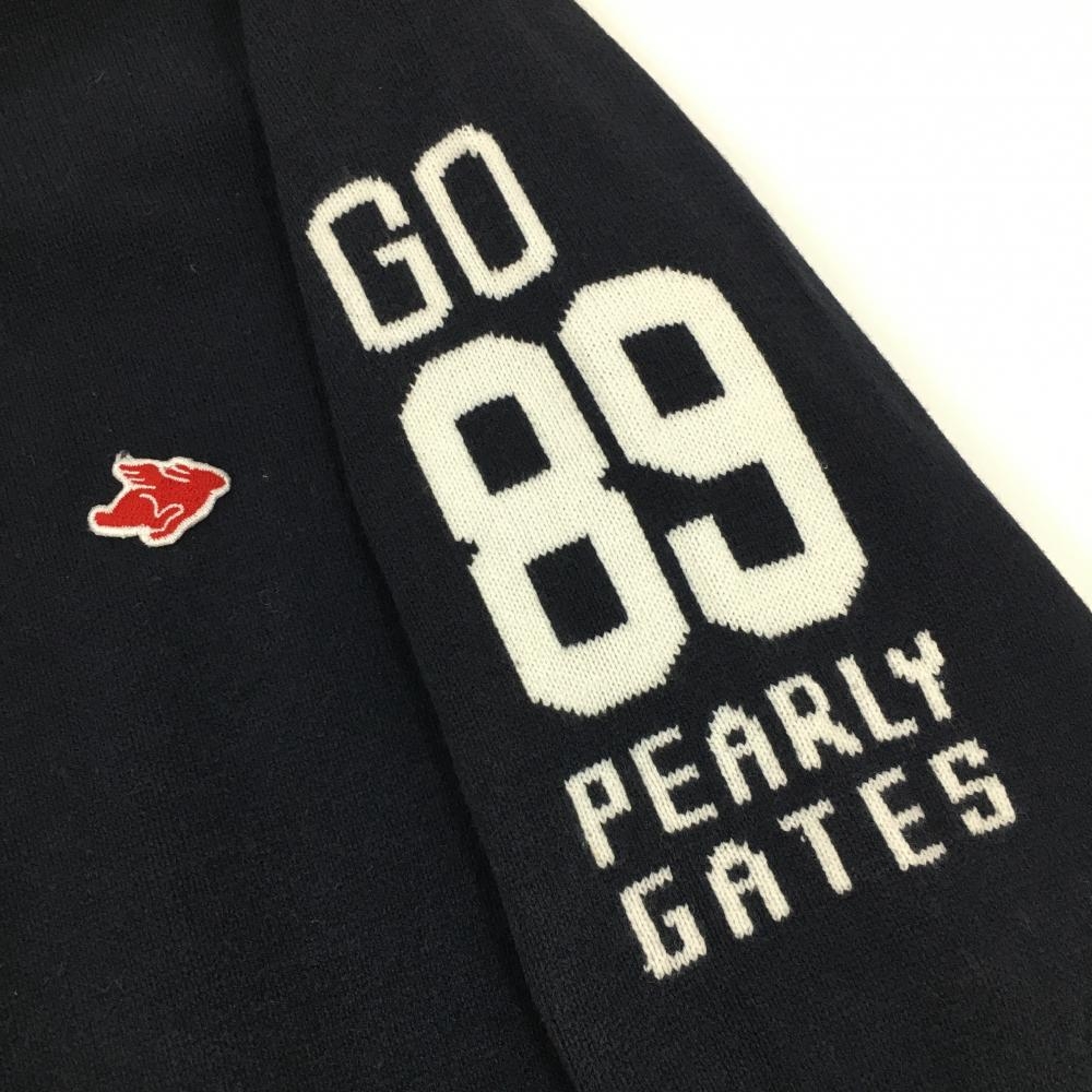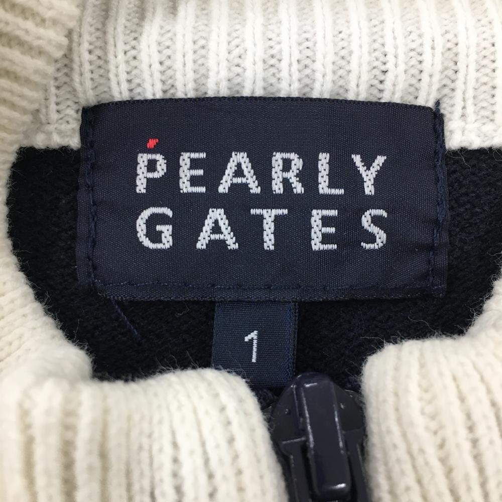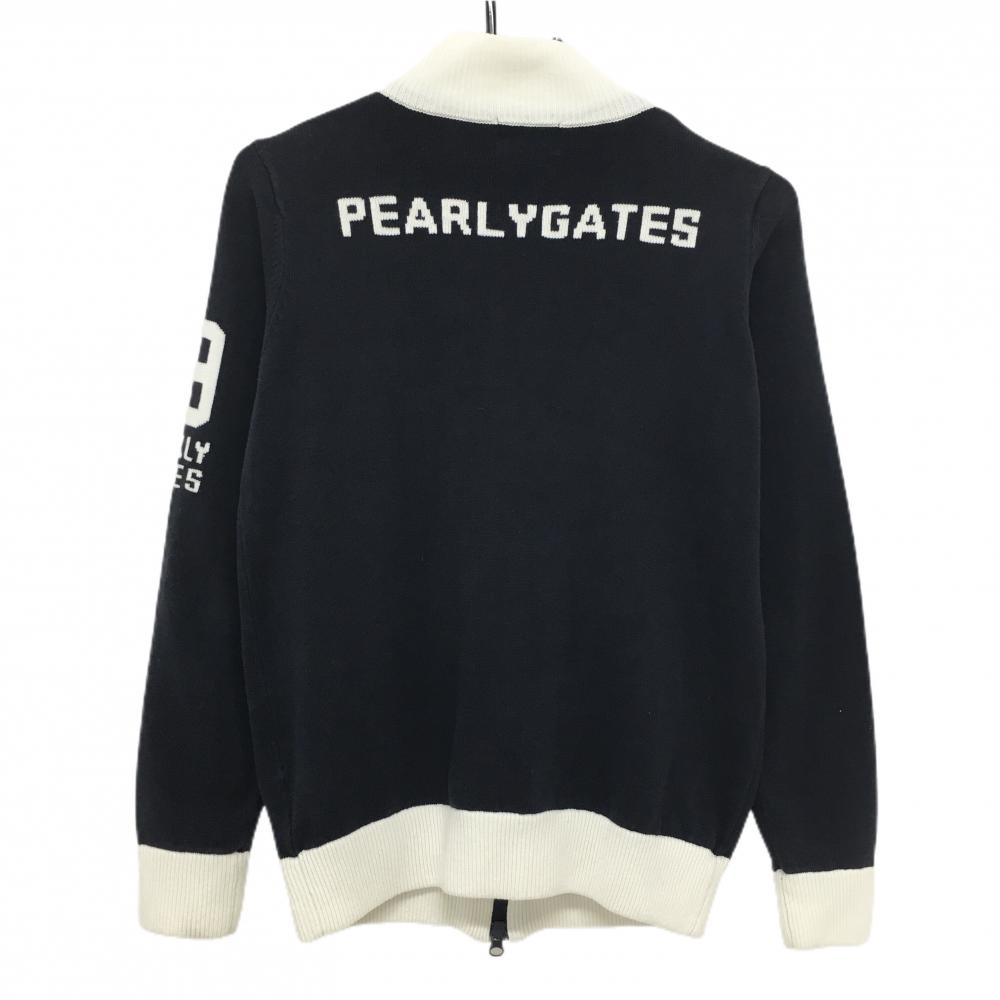 パーリーゲイツ ニットジャケット ネイビー×白 袖ロゴ コットン混 レディース 1(M) ゴルフウェア PEARLY GATES
