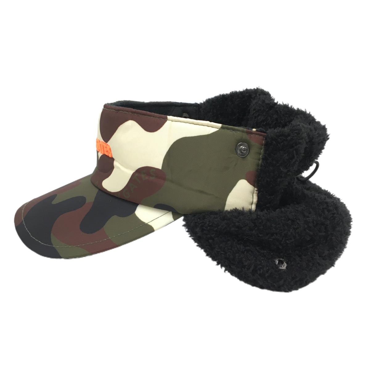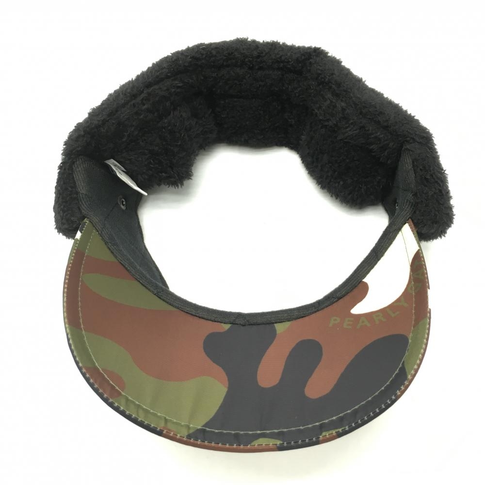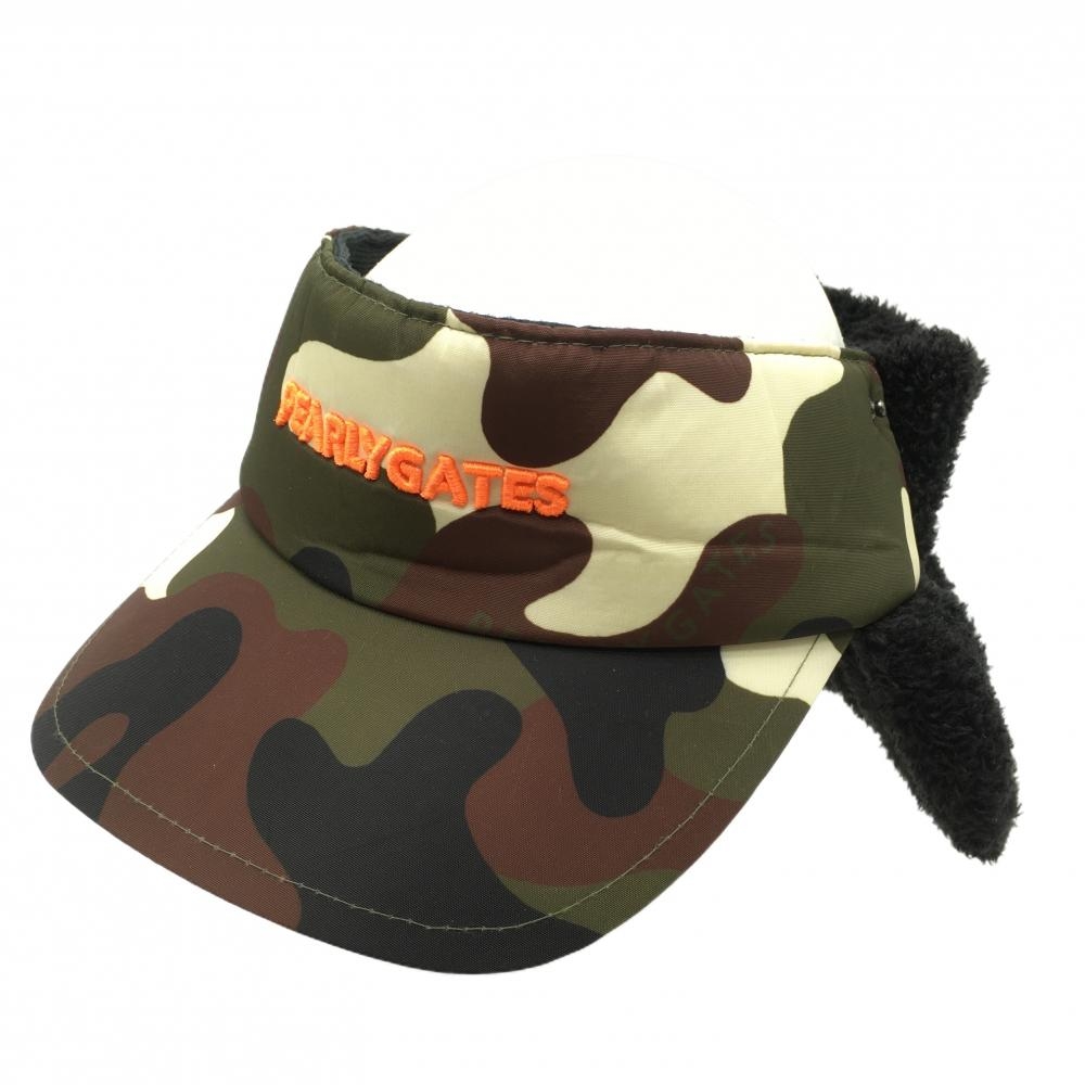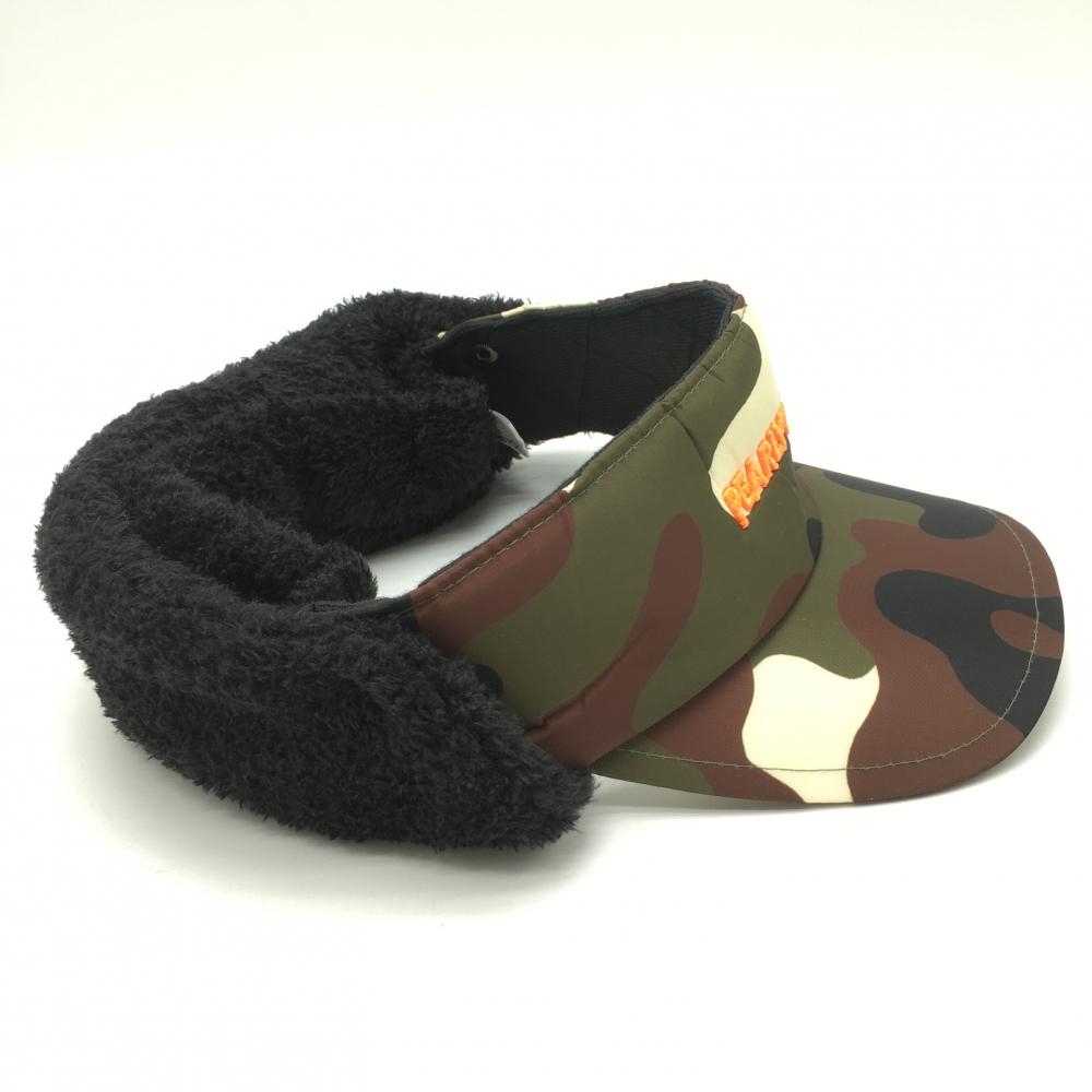 【超美品】パーリーゲイツ 耳当て付サンバイザー ダークグリーン×黒 迷彩×ボア カモフラ FR ゴルフウェア PEARLY GATES