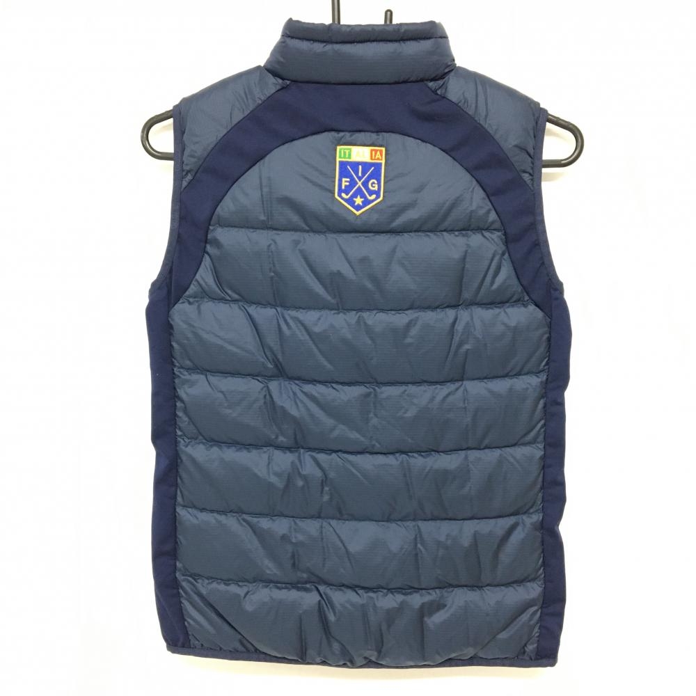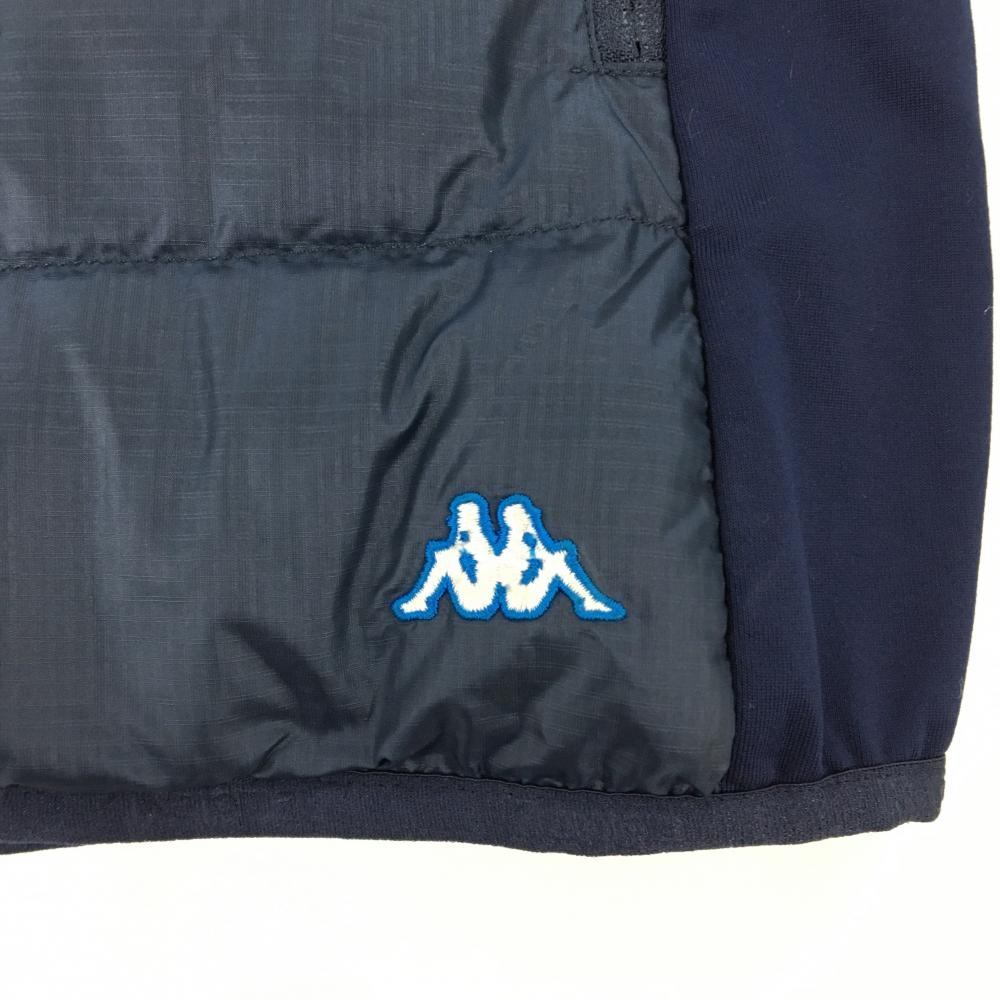 【美品】カッパ ダウンベスト ネイビー×白 フロントワッペン サイド切替 レディース M ゴルフウェア Kappa