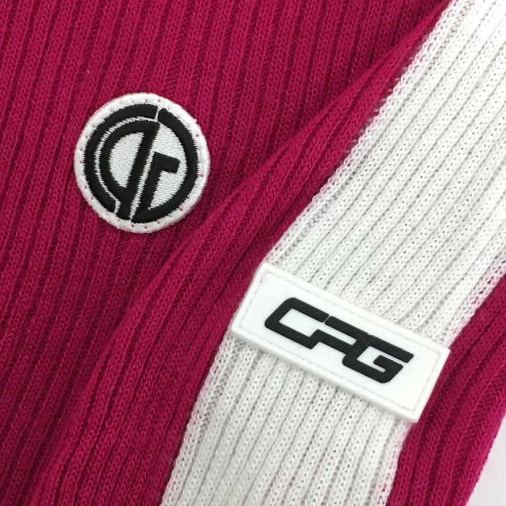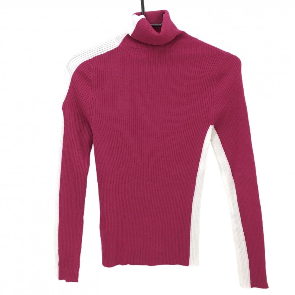 【超美品】シーピージーゴルフ タートルネックセーター ピンク×白 リブ編み ワッペン ニット レディース 1(S) ゴルフウェア CPG GOLF