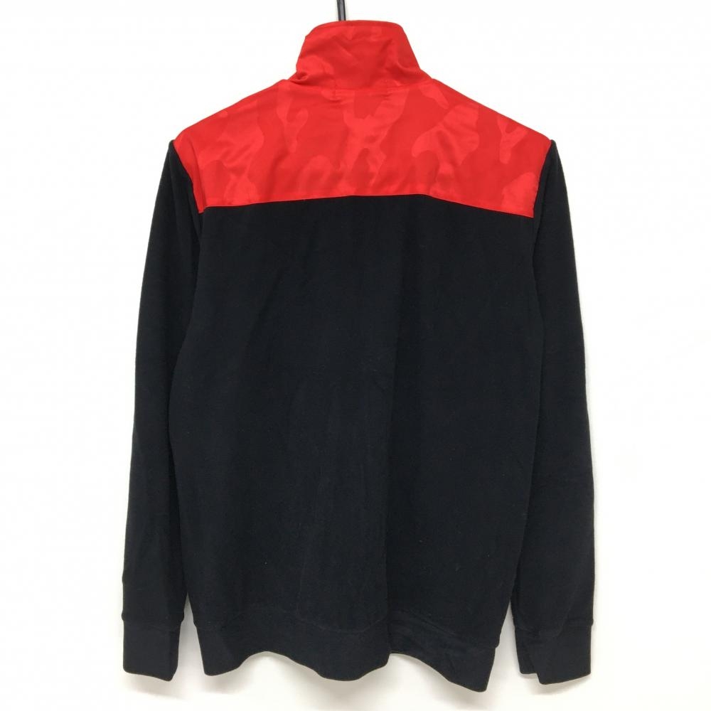 【超美品】マークアンドロナ 異素材ジャケット 黒×レッド 上部迷彩地模様 カモフラ フリース メンズ 46(M) ゴルフウェア MARK&LONA