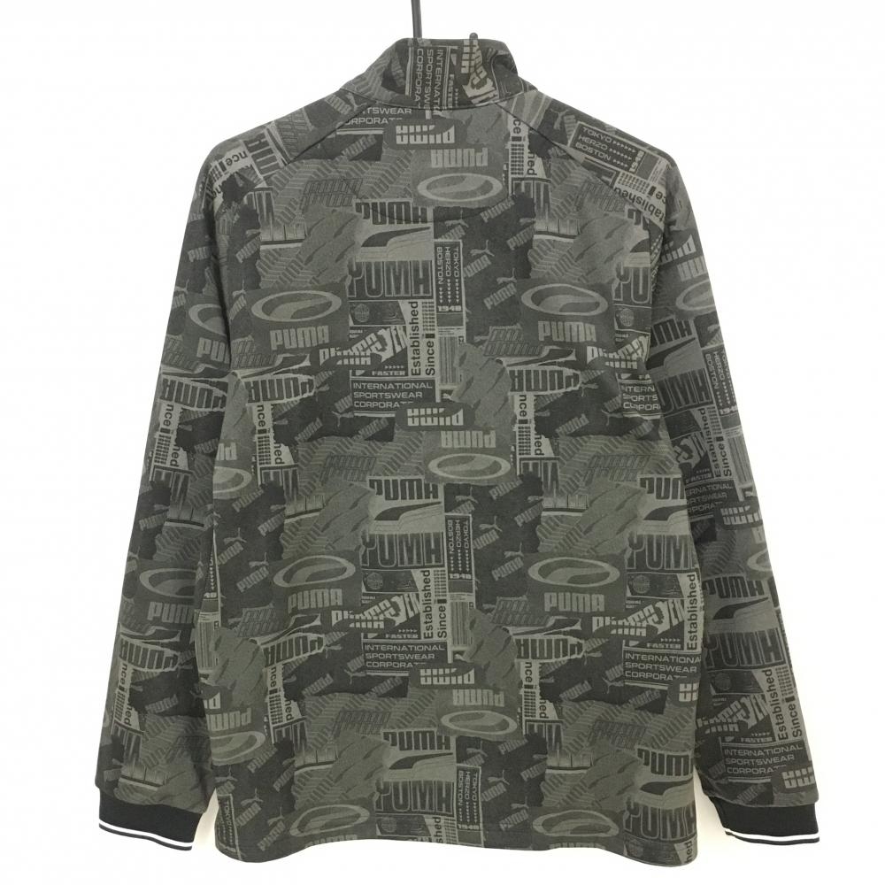 【美品】プーマ ブルゾン グレー×黒 総柄 ロゴ 裏起毛 メンズ L ゴルフウェア PUMA