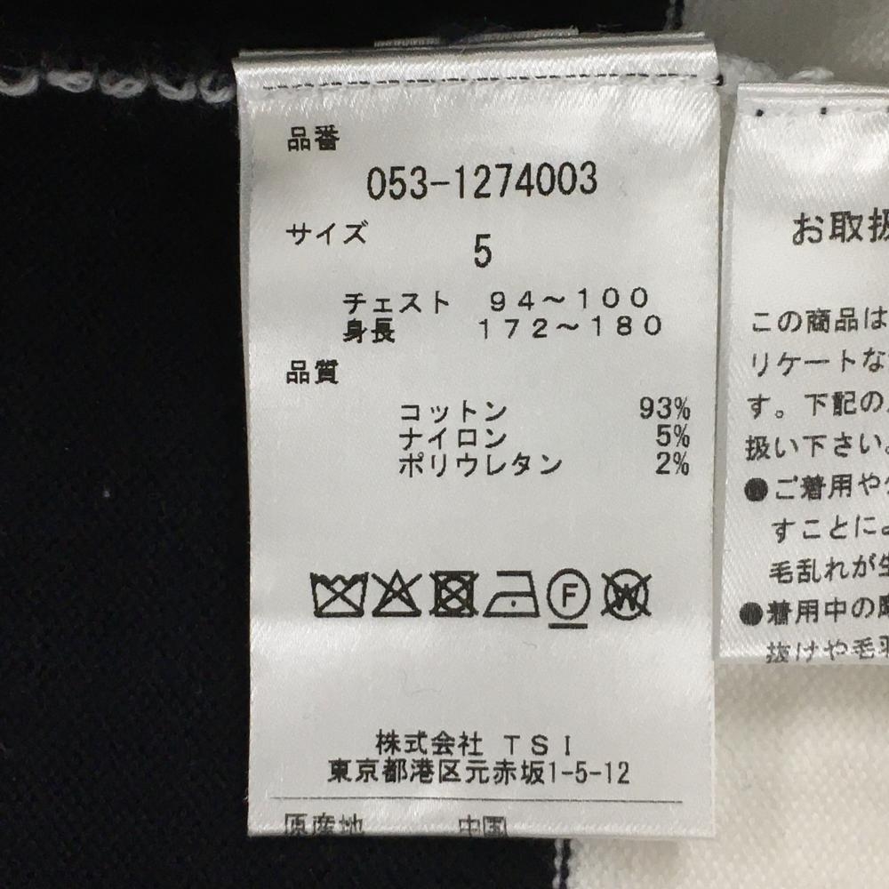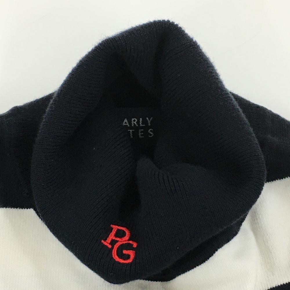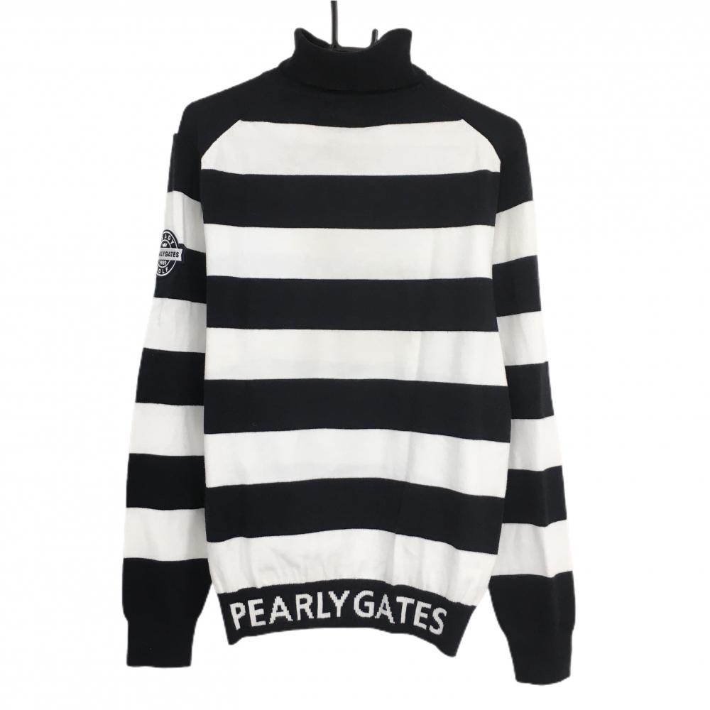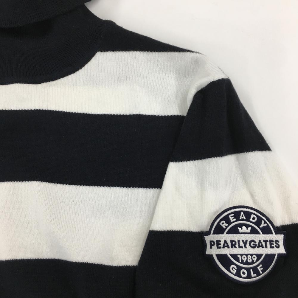 【美品】パーリーゲイツ タートルネックセーター ネイビー×白 ボーダー コットン混 ニット メンズ 5(L) ゴルフウェア PEARLY GATES