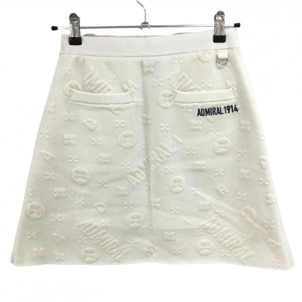 アドミラル ニットスカート 白 凹凸ロゴ総柄 裏地付 レディース M ゴルフウェア Admiral