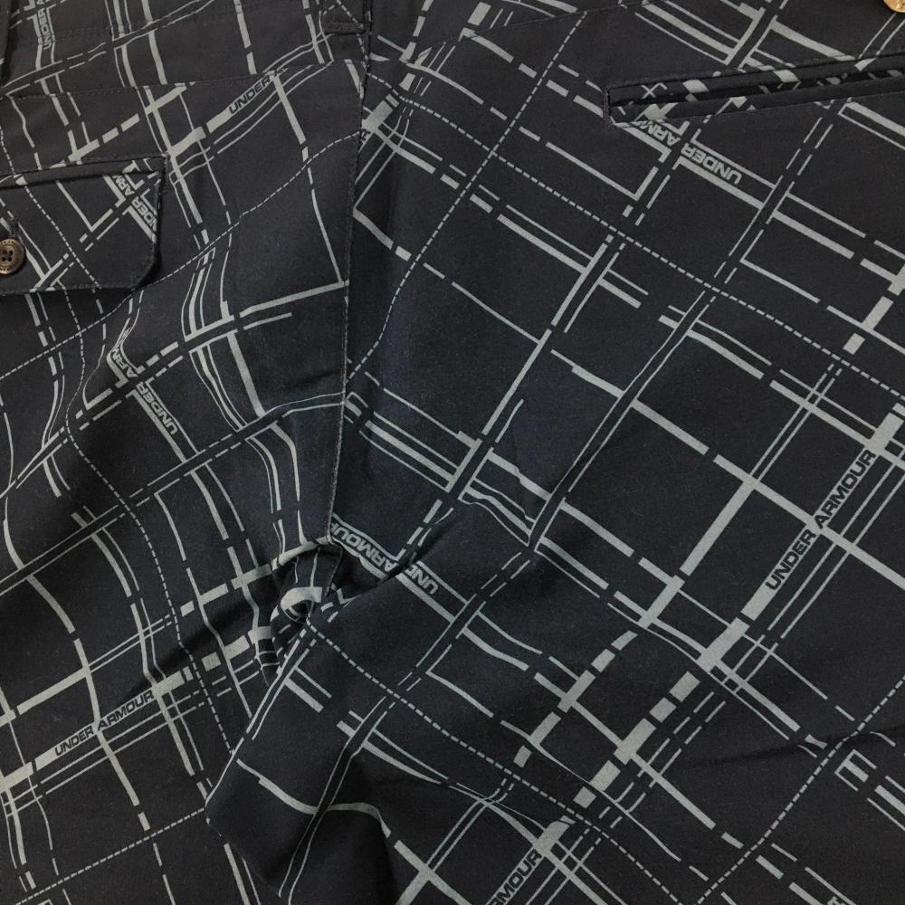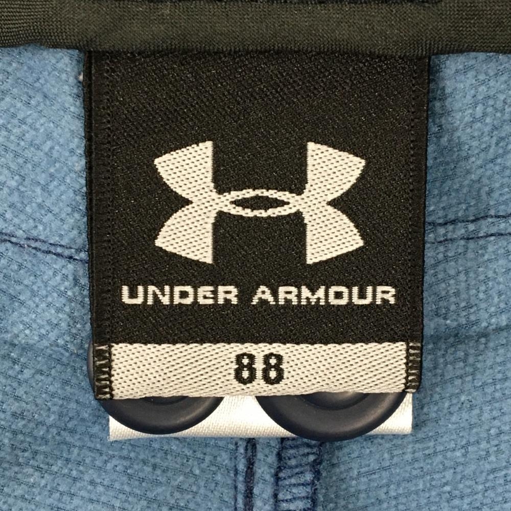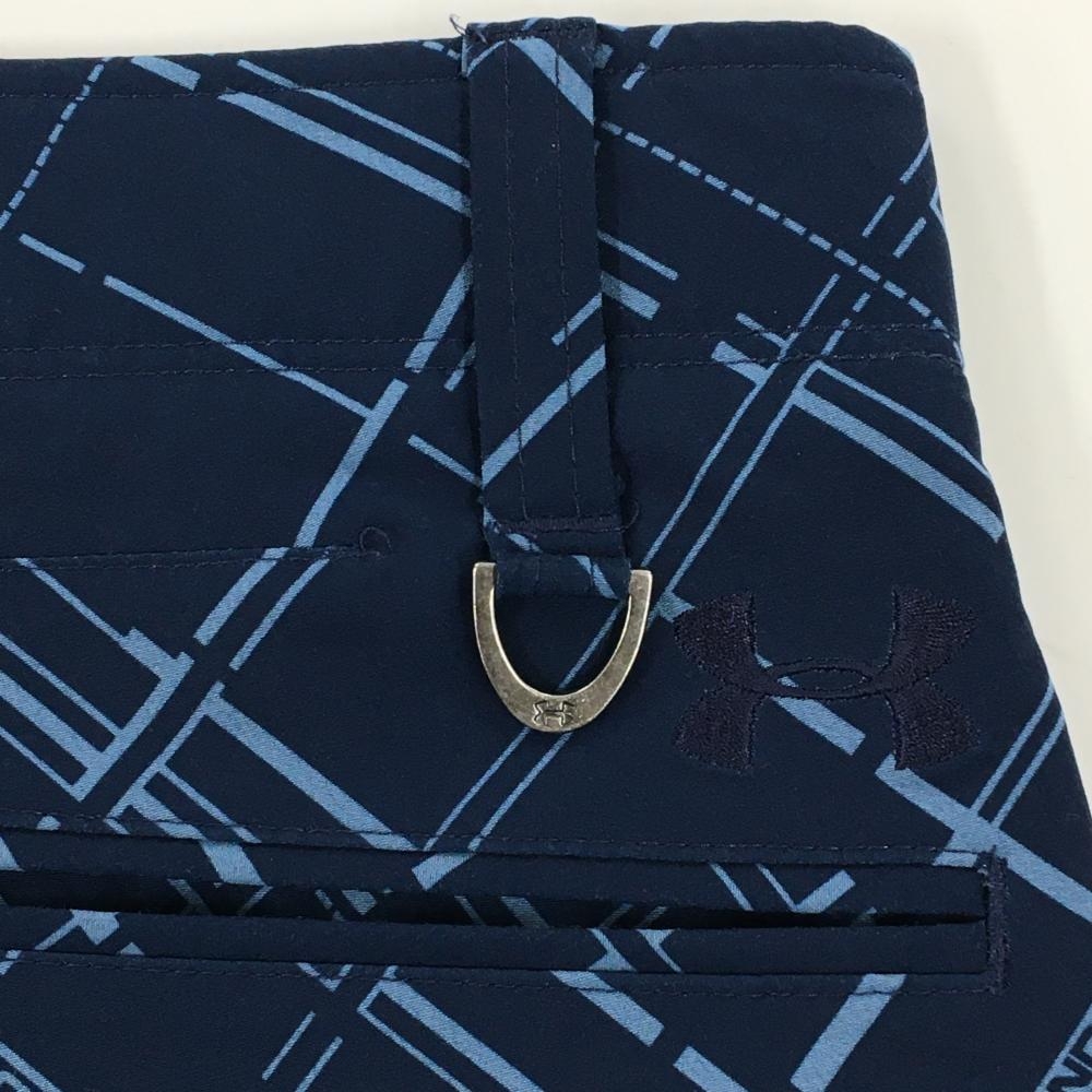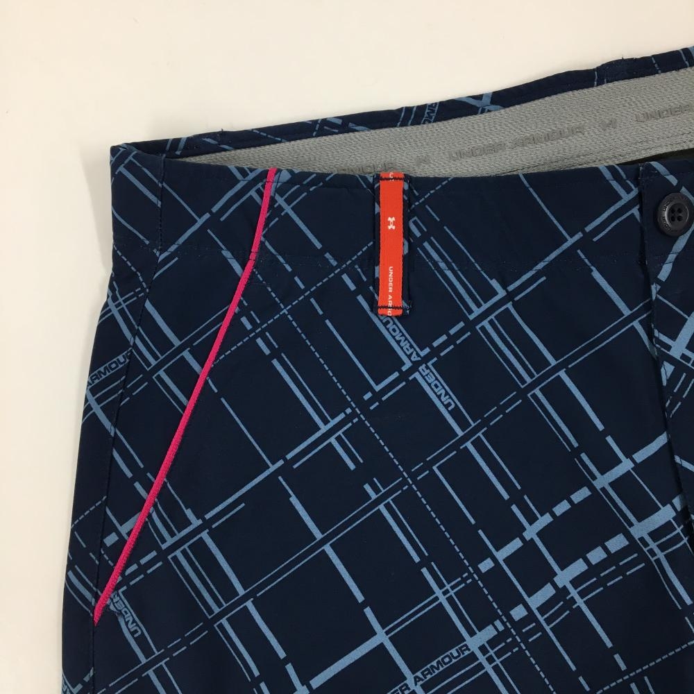 【美品】アンダーアーマー パンツ ネイビー×ライトブルー チェック 裏微起毛 メンズ 88 ゴルフウェア UNDER ARMOUR