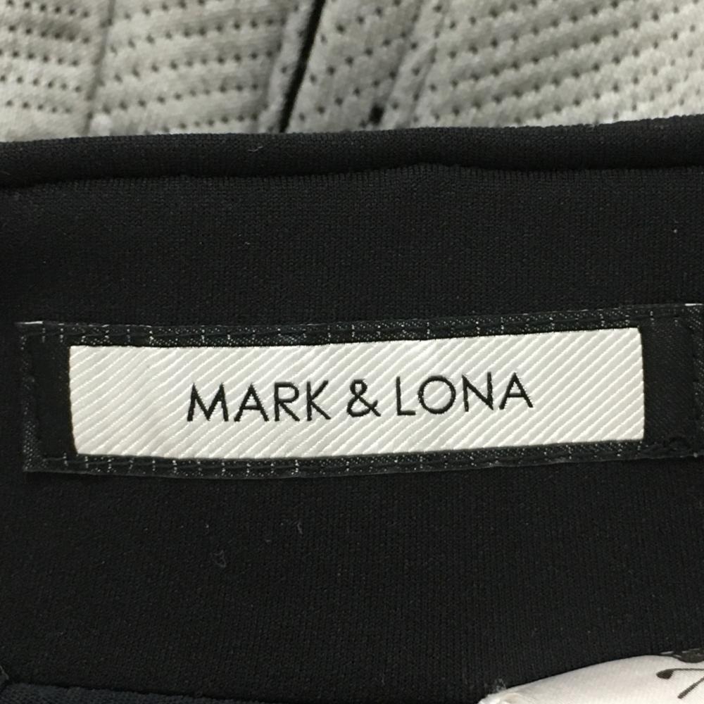 【美品】マークアンドロナ スカート グレー×黒 ロゴ総柄 サイドウエストゴム 後ろハーフジップ レディース 36(S) ゴルフウェア MARK&LONA