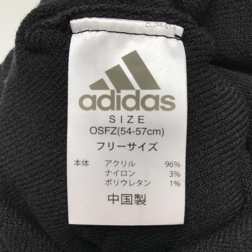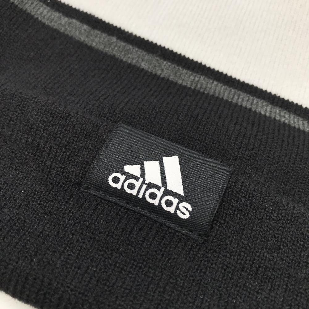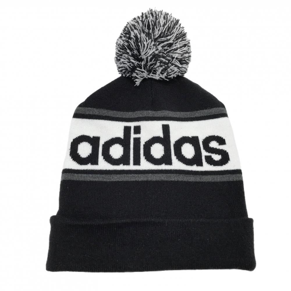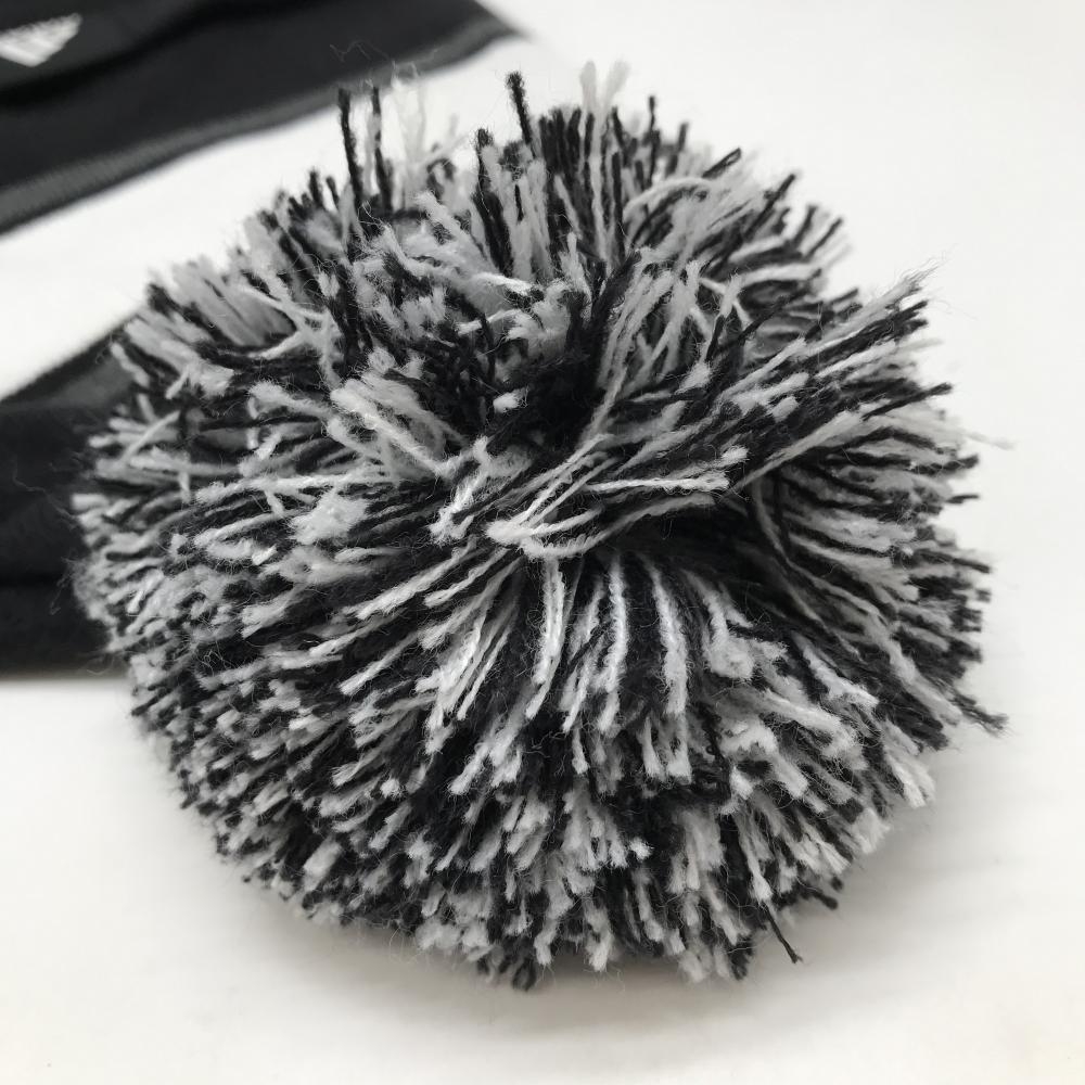 【超美品】アディダス ニット帽 黒×白 ビッグロゴ アクリル混 ボンボン付 レディース フリーサイズ(54-57cm) ゴルフウェア adidas