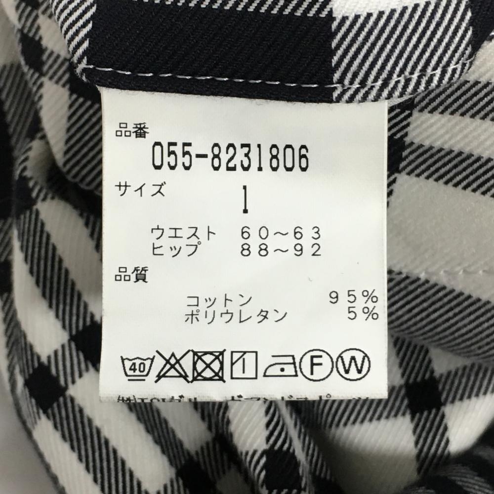 【美品】パーリーゲイツ パンツ 白×黒 チェック コットン混 レディース 1(M) ゴルフウェア PEARLY GATES