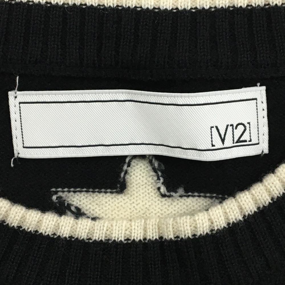 V12 セーター 黒×白 シリコンロゴ 星 ニット レディース 1(M) ゴルフウェア V12