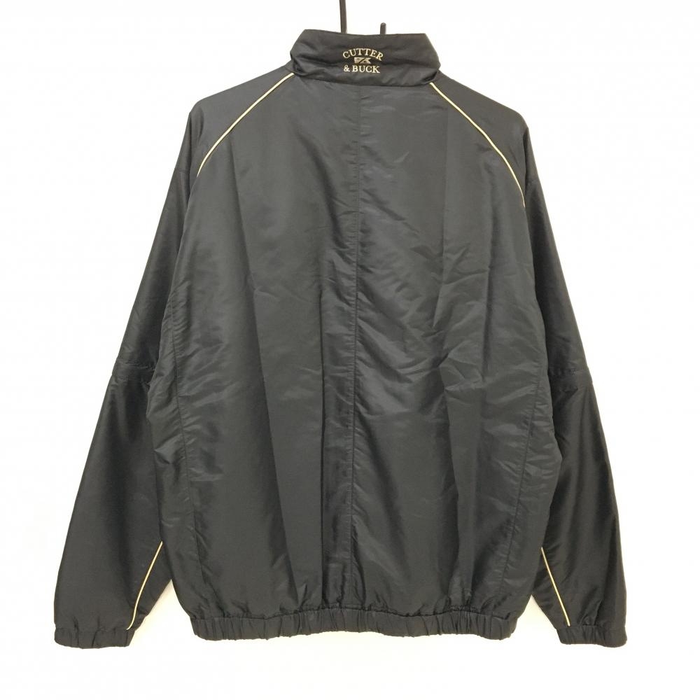 【超美品】カッターアンドバック 2WAY中綿ジャケット 黒×ベージュ ロゴ刺しゅう 袖着脱可 メンズ LL ゴルフウェア CUTTER&BUCK
