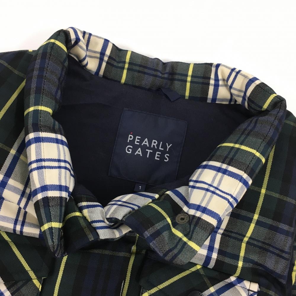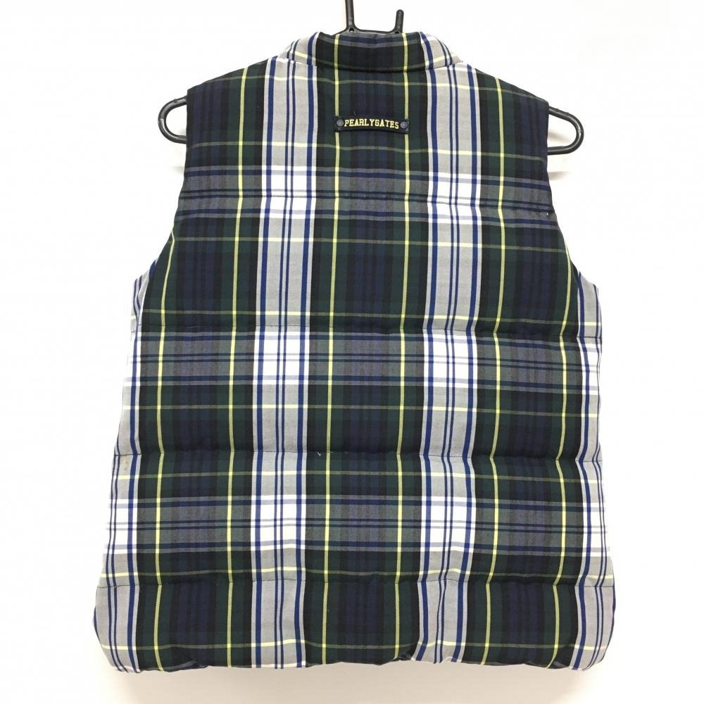 【美品】パーリーゲイツ ダウンベスト ダークグリーン×ブルー チェック 軽量 レディース 1(M) ゴルフウェア PEARLY GATES