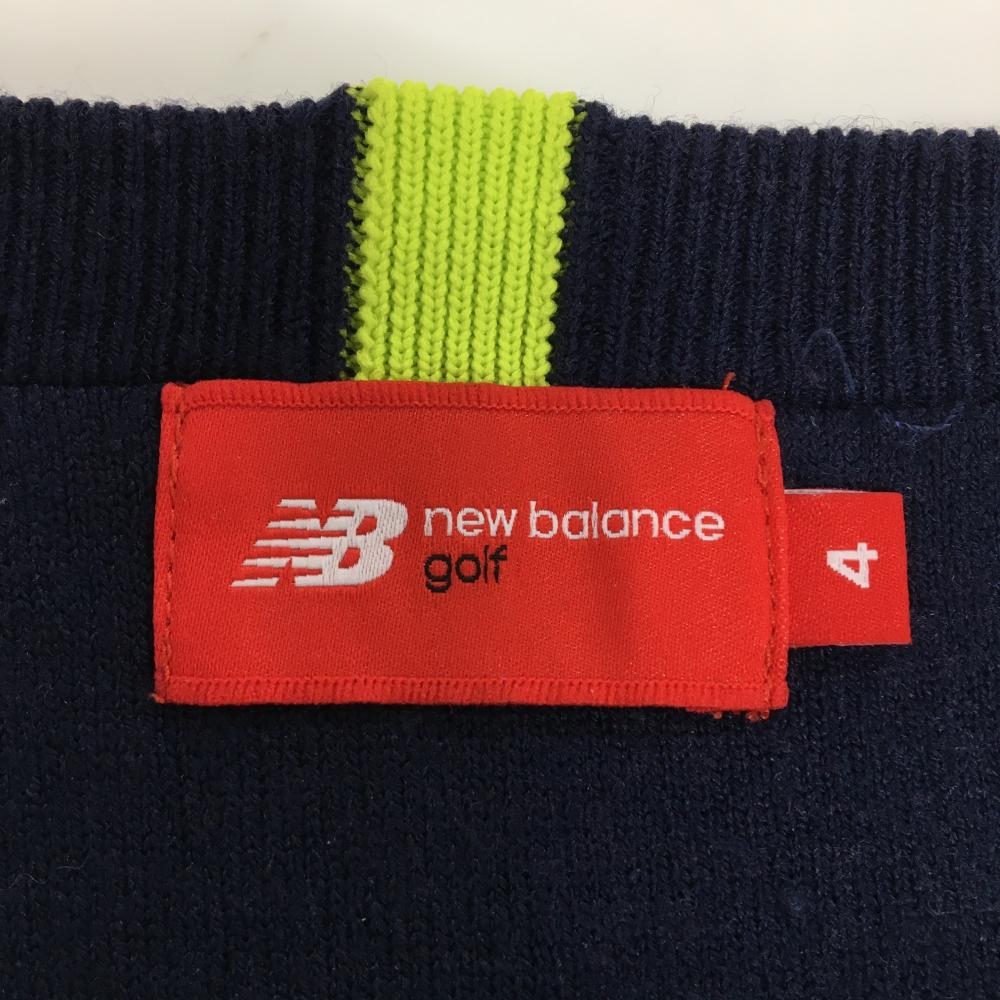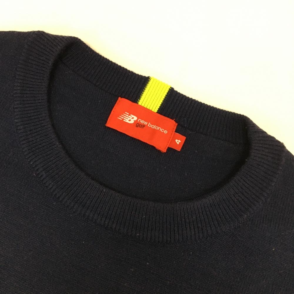 【美品】ニューバランスゴルフ セーター ネイビー 一部ボーダー編み 立体ロゴ ニット メンズ 4(M) ゴルフウェア 2023年モデル New Balance