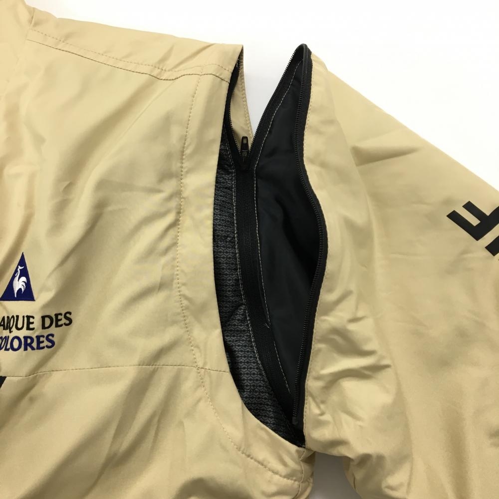 【美品】ルコックゴルフ 2WAY中綿ジャケット ベージュ×黒 黒地地模様 袖着脱可 メンズ L ゴルフウェア le coq sportif