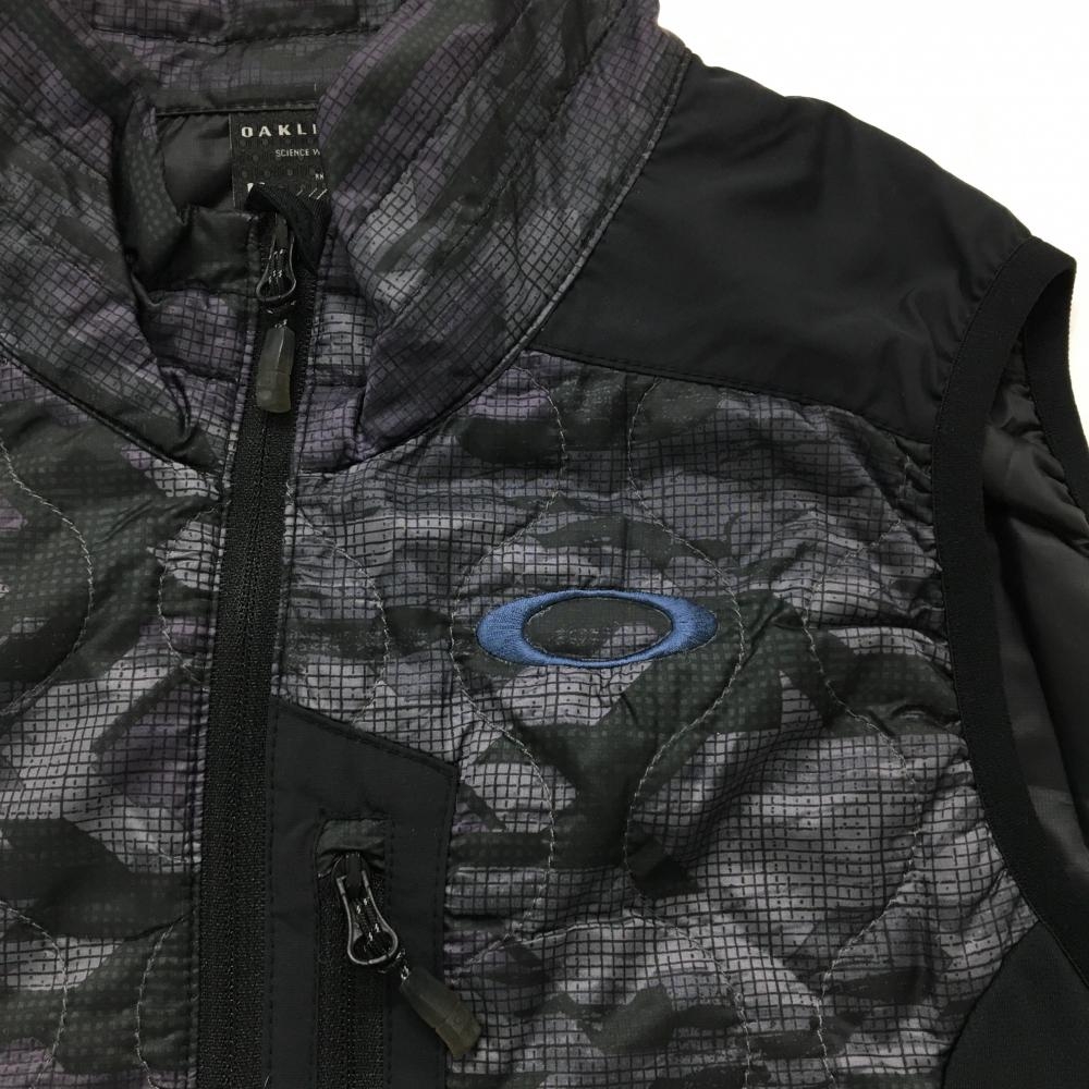 【超美品】オークリー 中綿ベスト グレー×黒×パープル 総柄 薄手 メンズ M ゴルフウェア Oakley