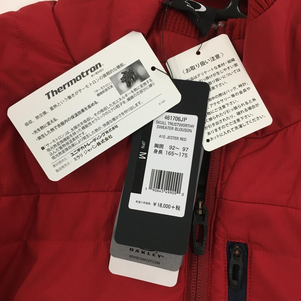 【新品】オークリー 中綿ニットジャケット レッド 前身頃中綿 蓄熱裏地 保温 帯電防止 メンズ M ゴルフウェア Oakley