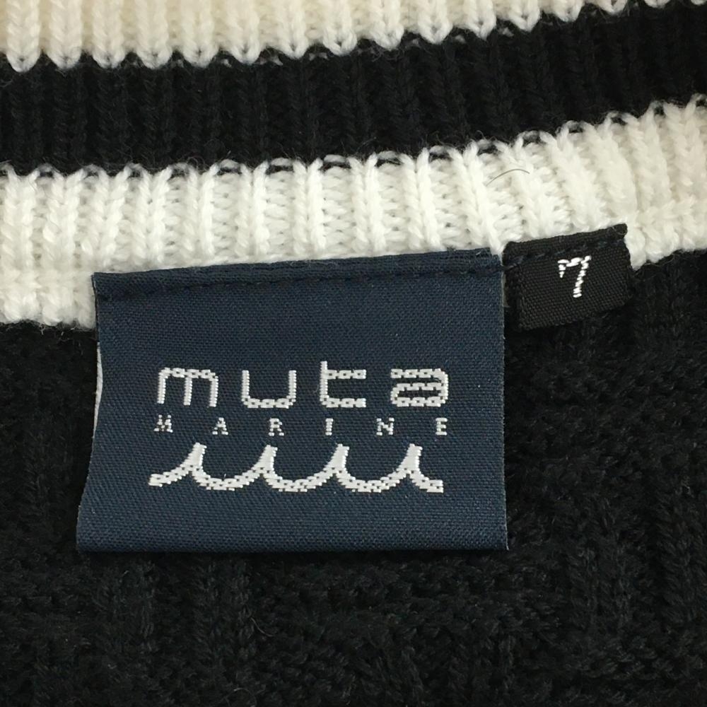 【美品】ムータマリン ニットベスト 黒×白 Vネック ワッペン メンズ 7(XL) ゴルフウェア 2024年モデル muta