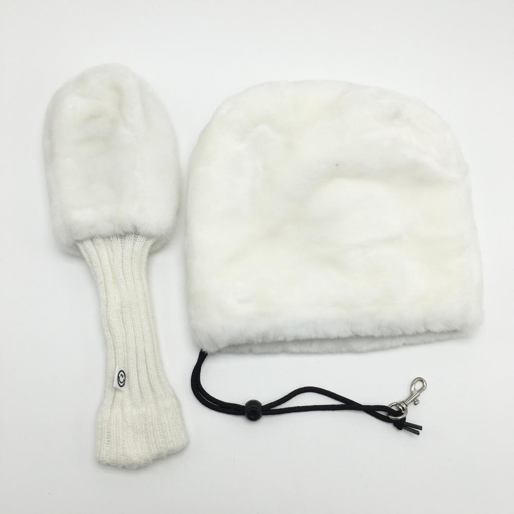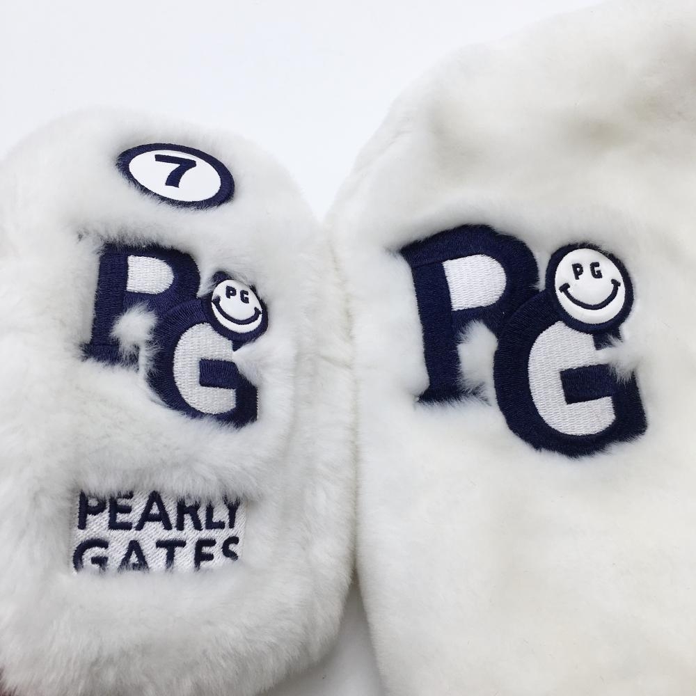【超美品】パーリーゲイツ ヘッドカバー2点セット(アイアンカバー FW) 白×ネイビー ボア ニコちゃん スマイルゴルフ PEARLY GATES