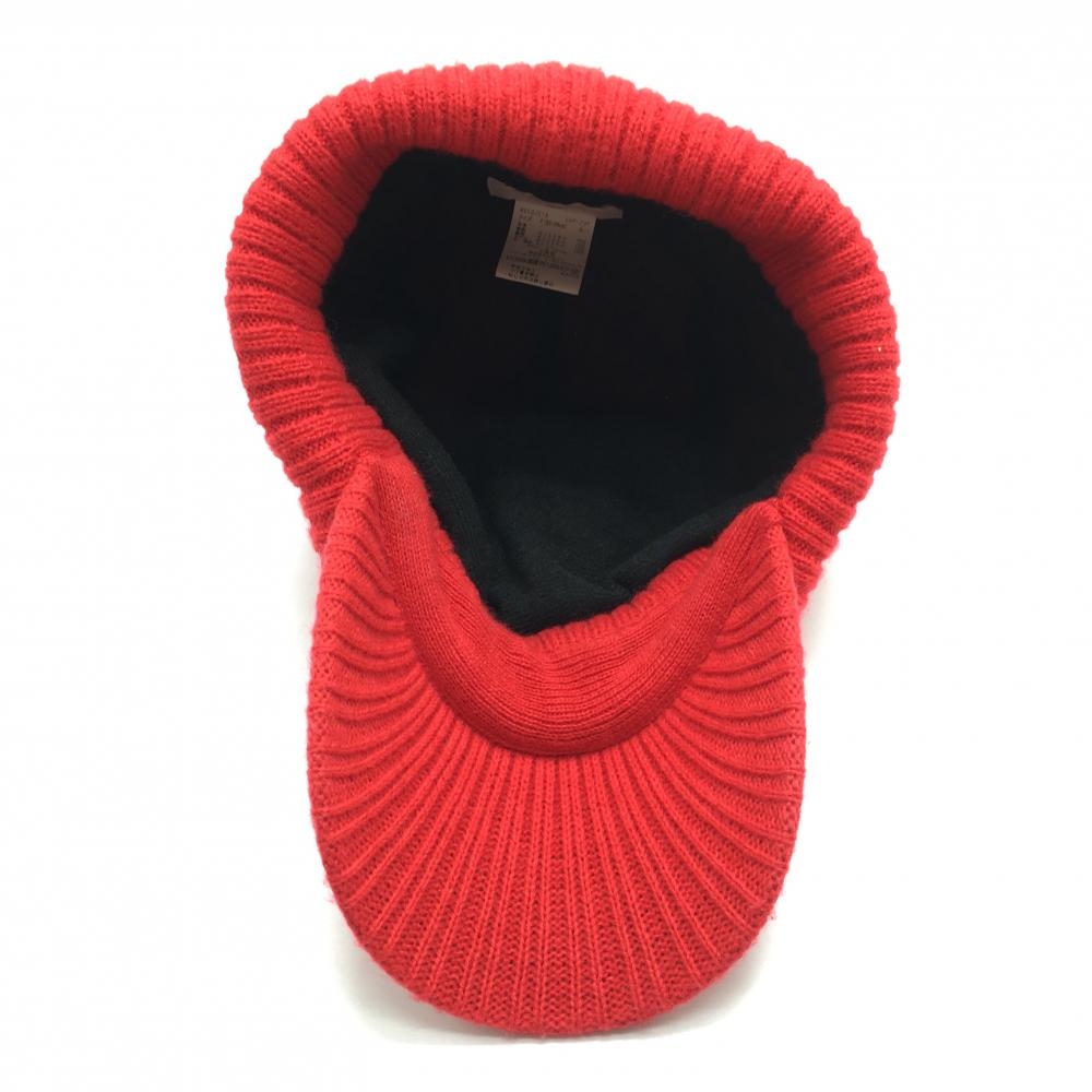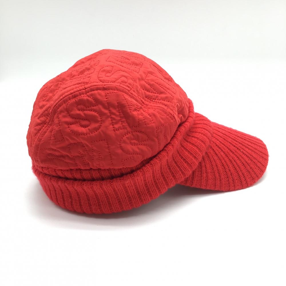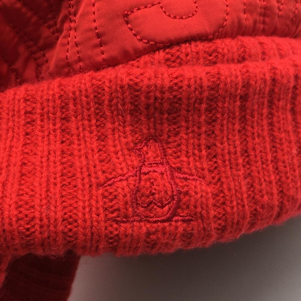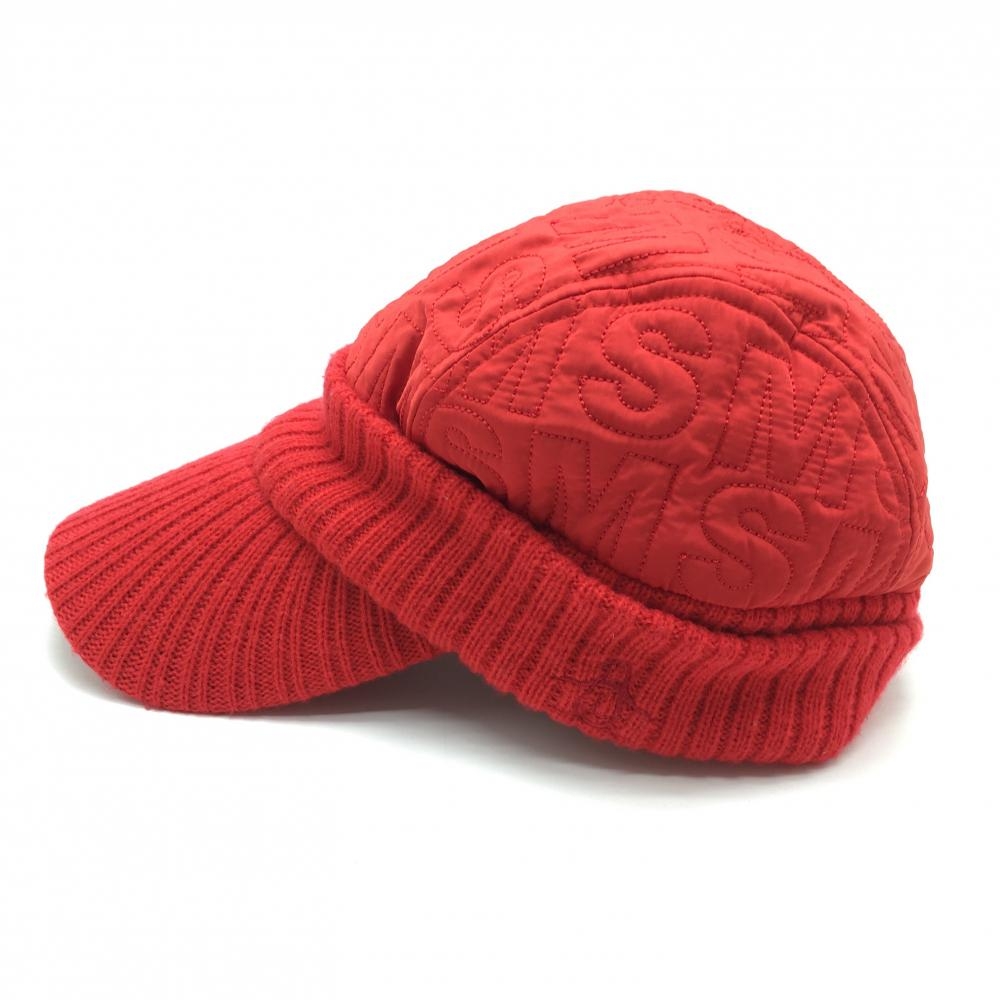 【美品】マンシングウェア 中綿入りつば付きニット帽 レッド クラウン中綿・英字柄 F(55-59cm) ゴルフウェア Munsingwear