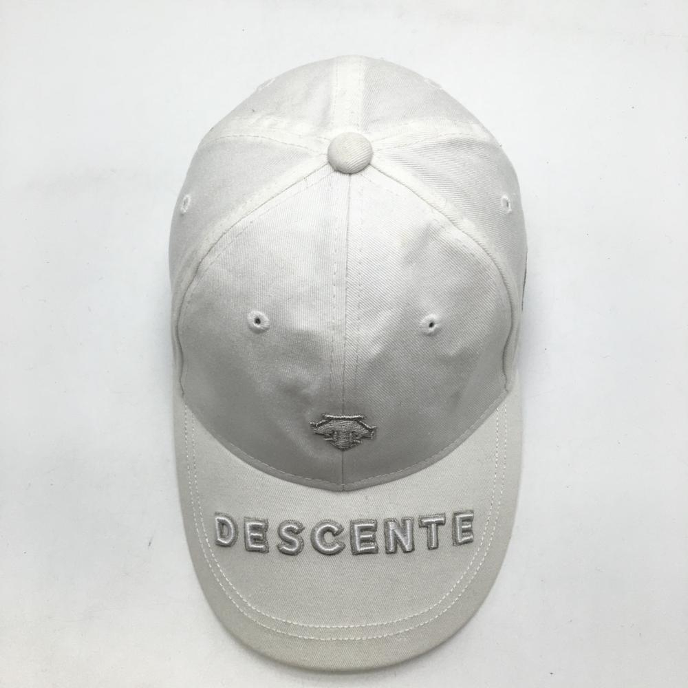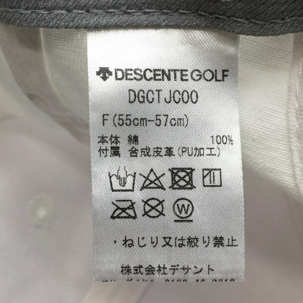 【美品】デサントゴルフ キャップ 白×グレー つば立体ロゴ刺しゅう 中田英寿 F(55cm~57cm) ゴルフウェア DESCENTE