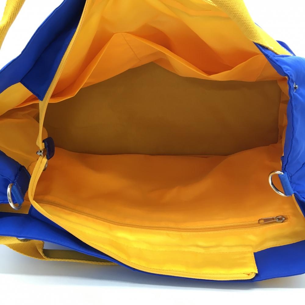 【美品】ルコック 2WAYビッグトートバッグ ブルー×イエロー 内外ポケット ショルダーストラップゴルフ le coq sportif