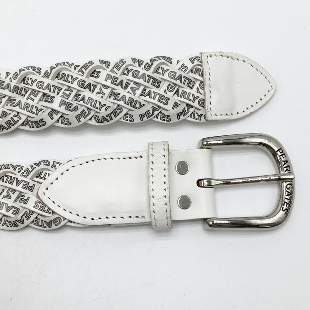 【美品】パーリーゲイツ 編み込みベルト 白×黒 ロゴ総柄 メンズ ゴルフウェア PEARLY GATES