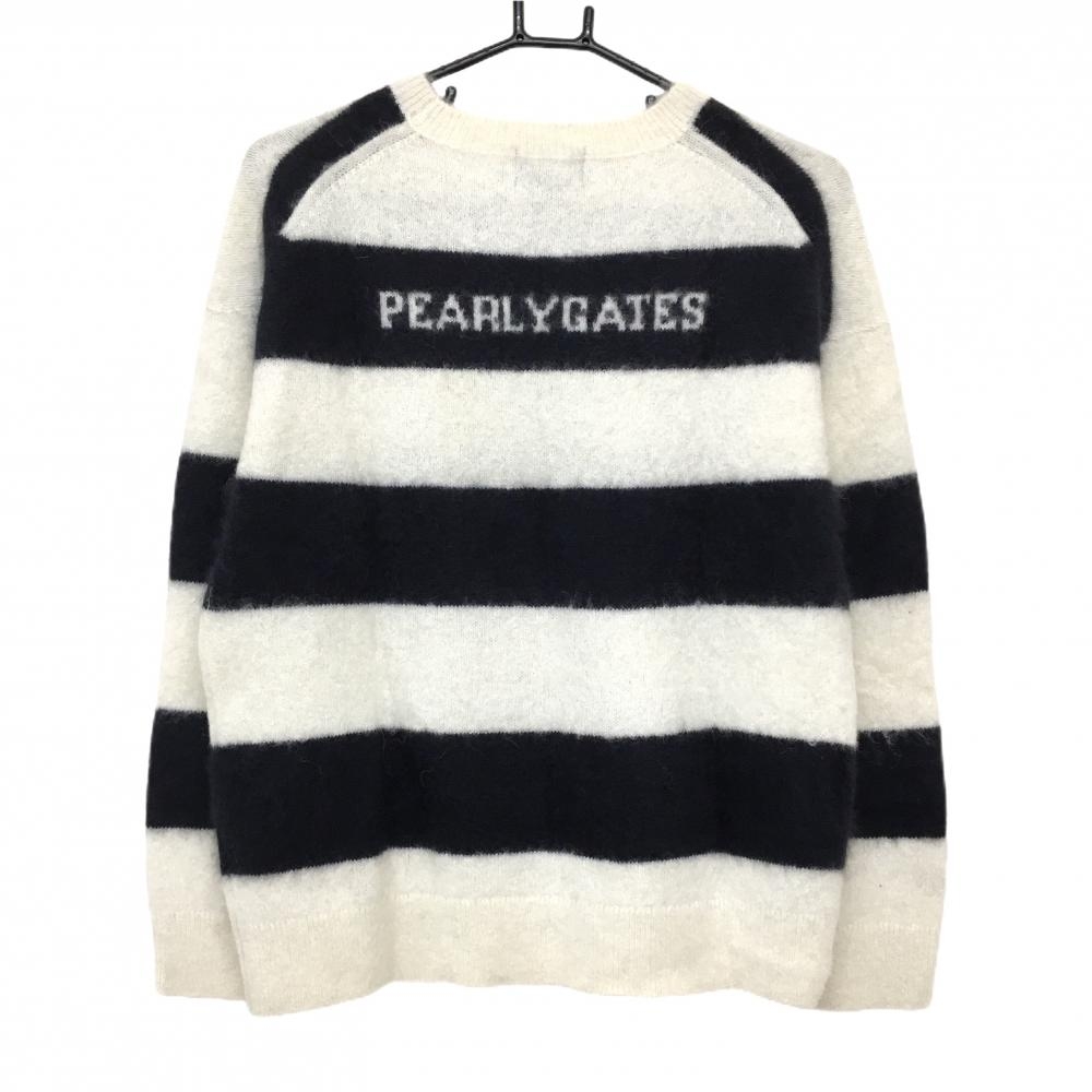 パーリーゲイツ セーター 白×ネイビー ボーダー アルバカ混 ニット レディース 0(S) ゴルフウェア PEARLY GATES