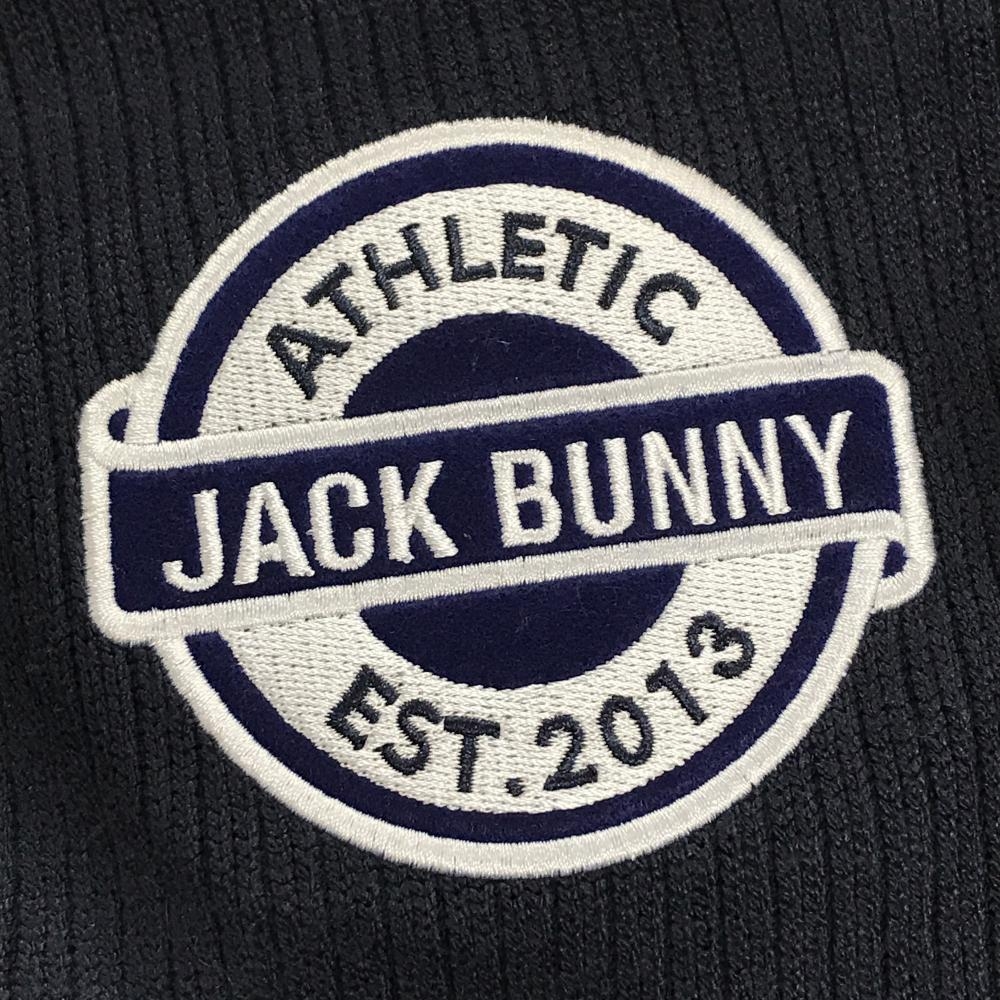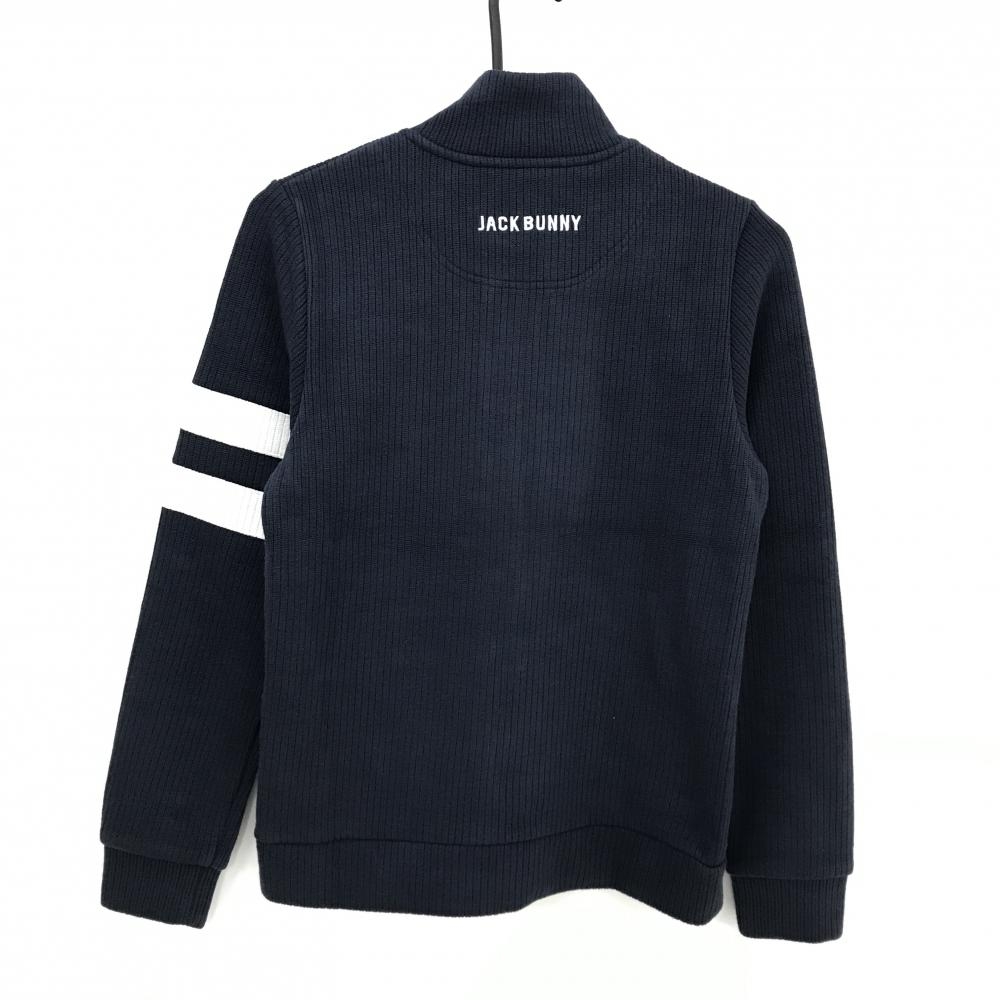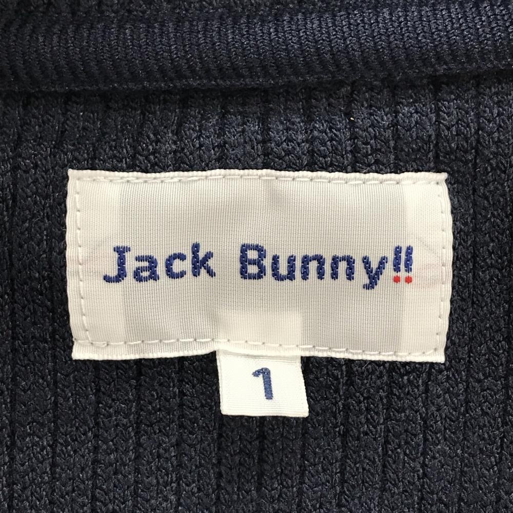 【美品】ジャックバニー ニットジャケット ネイビー×白 袖2ライン レディース 1(M) ゴルフウェア Jack Bunny