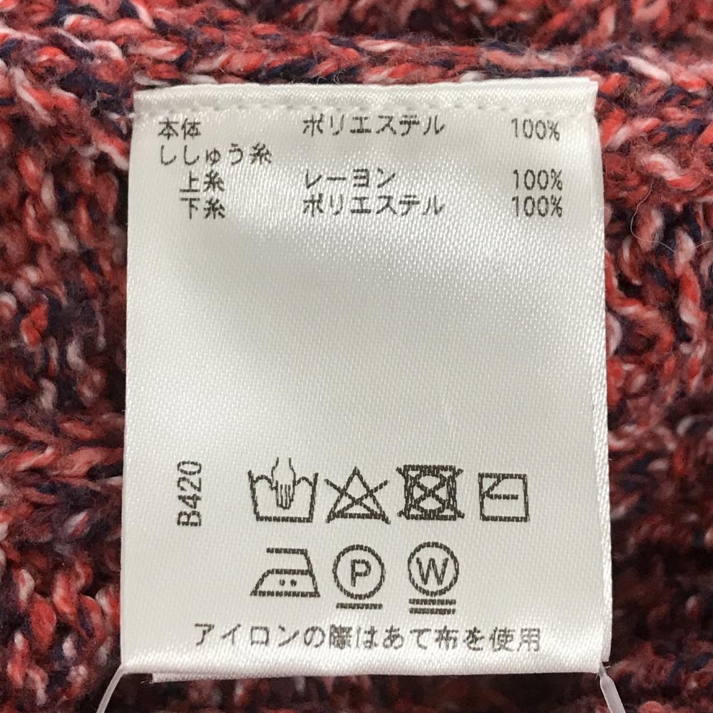 【超美品】ロサーセン タートルネックセーター レッド×ネイビー ケーブル編み ニット レディース M ゴルフウェア Rosasen