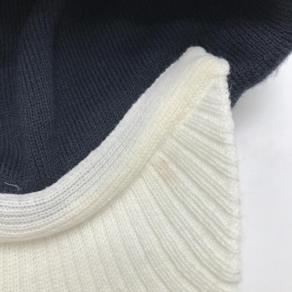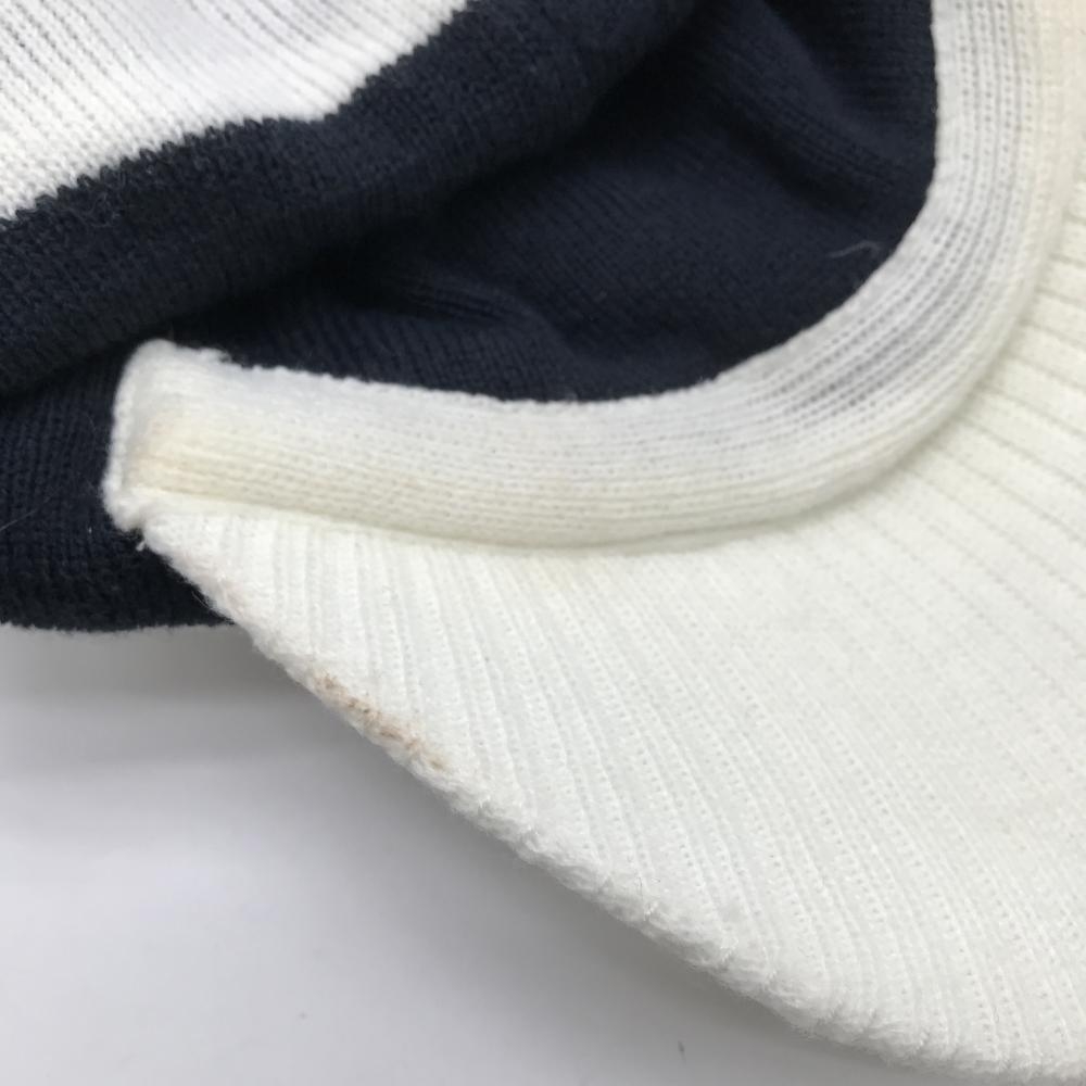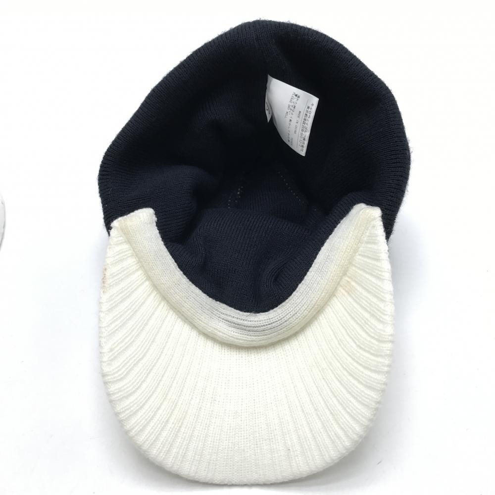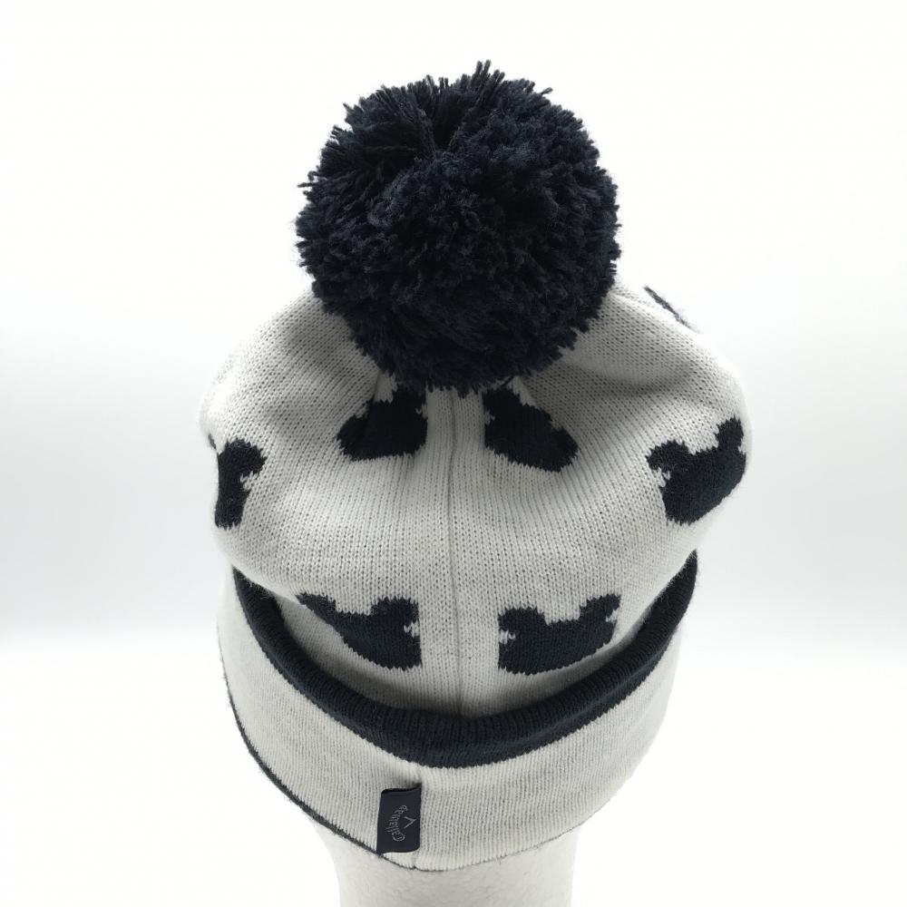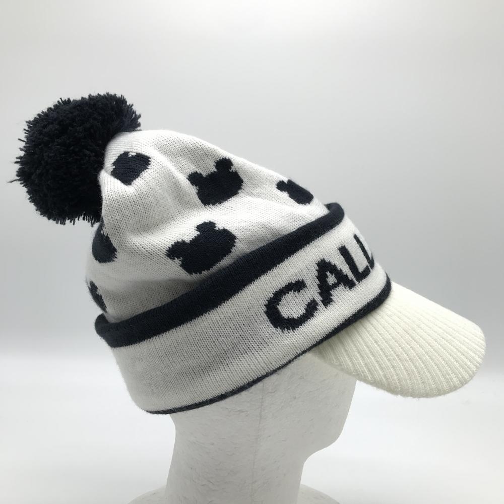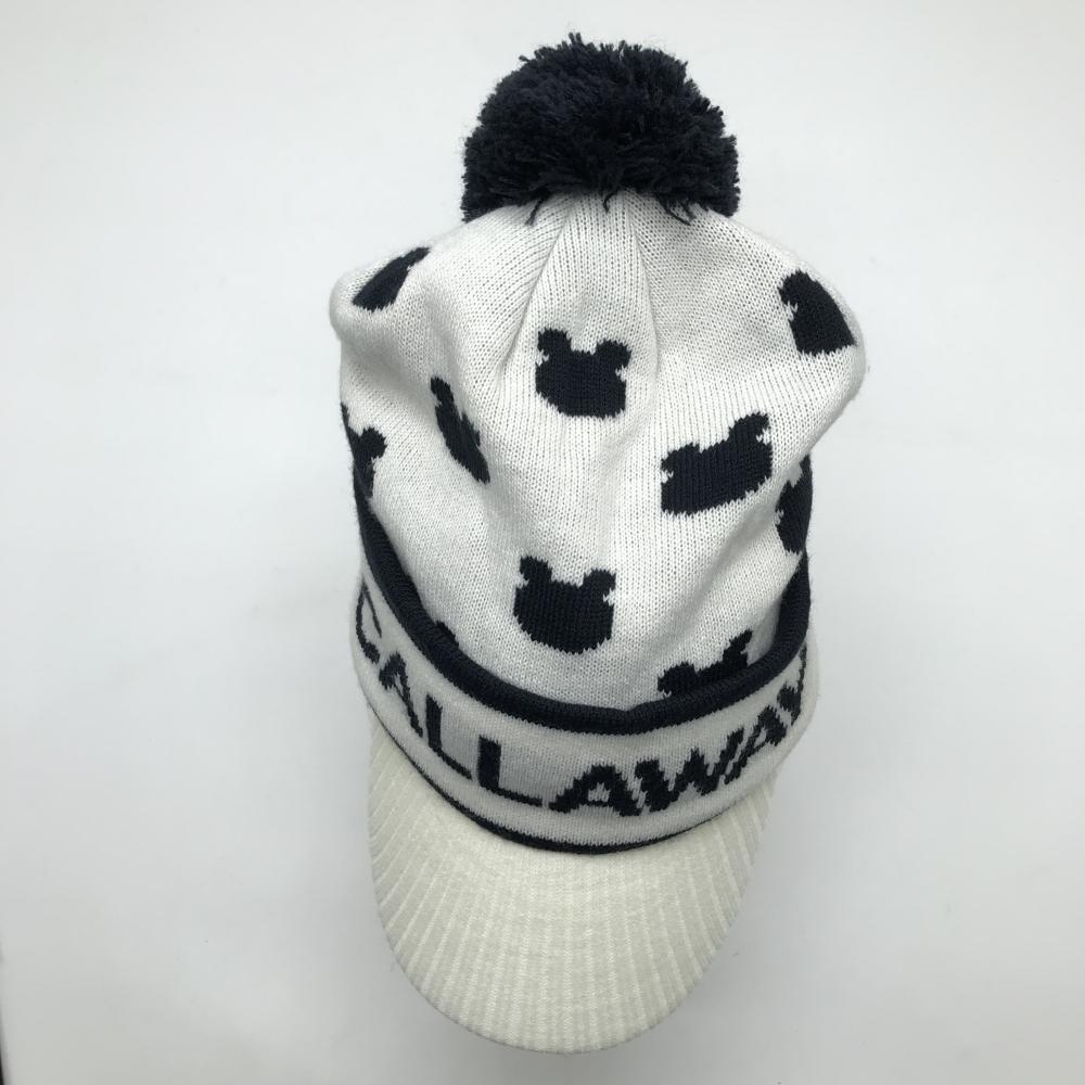 【美品】キャロウェイ つば付きニット帽 白×ネイビー クマロゴ FR ゴルフウェア Callaway