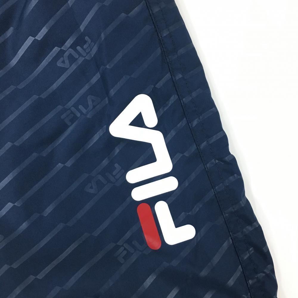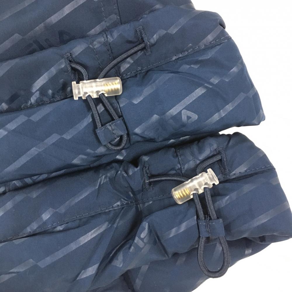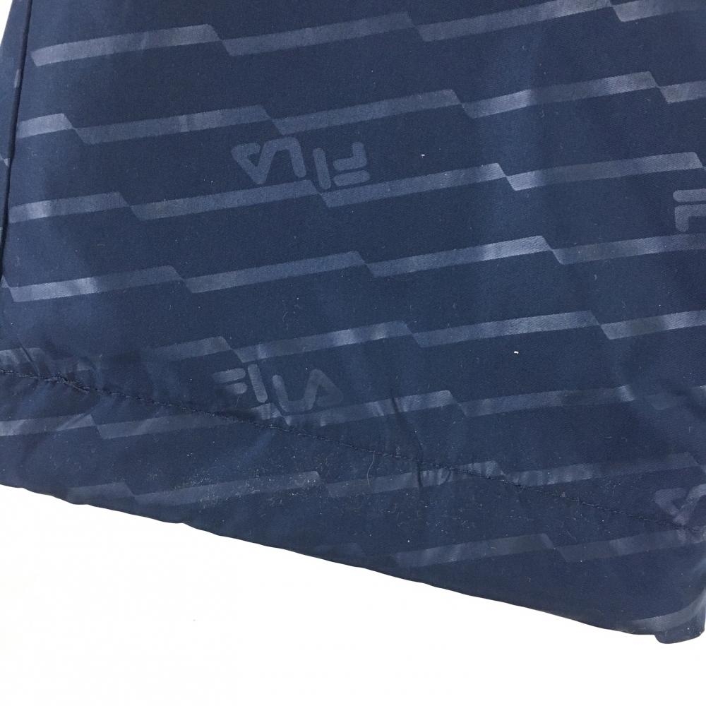 【超美品】フィラゴルフ 中綿パンツ ネイビー ロゴ総柄 ウエスト調整紐後ろゴム 裾ドローコード メンズ L ゴルフウェア FILA GOLF