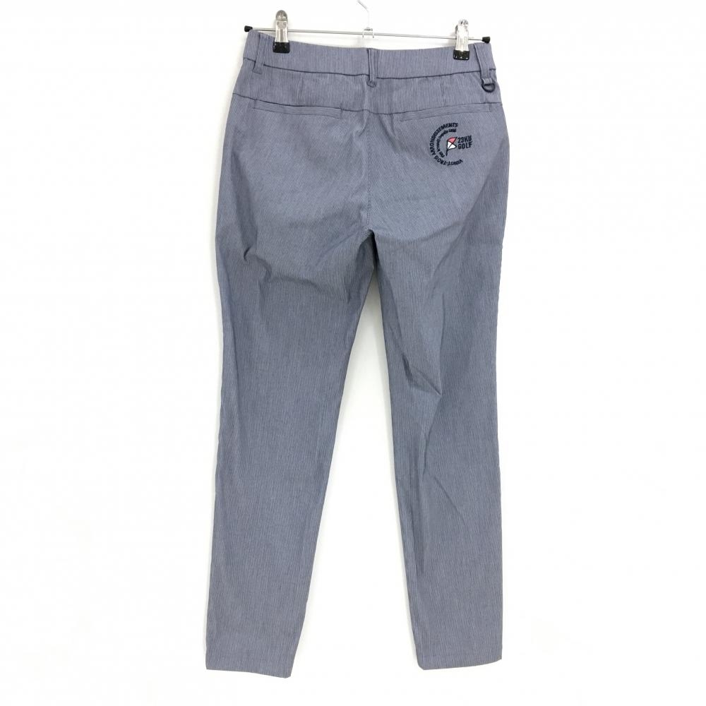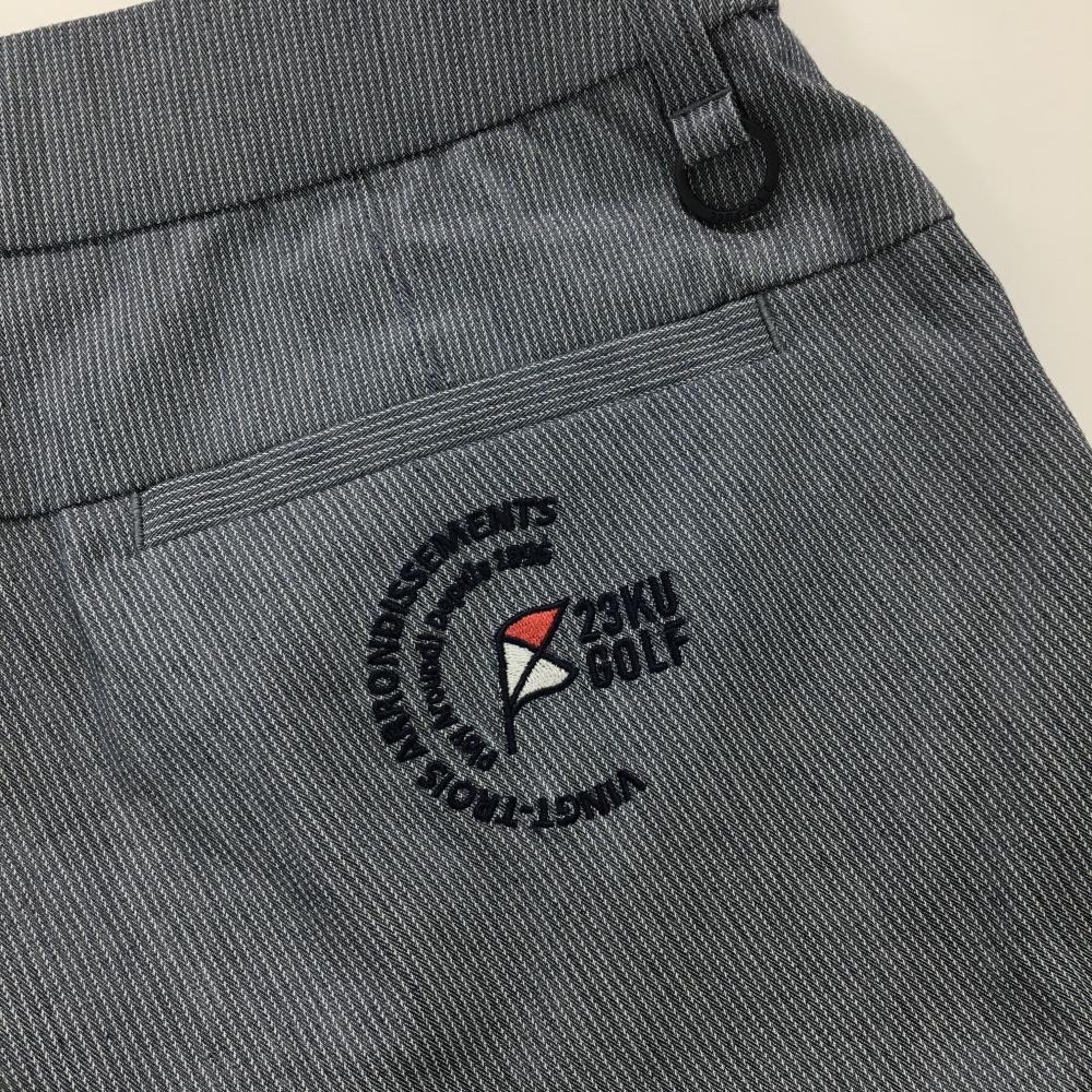 【超美品】23区ゴルフ パンツ グレー×白 細ストライプ バックロゴ刺しゅう レディース 64 ゴルフウェア 23区