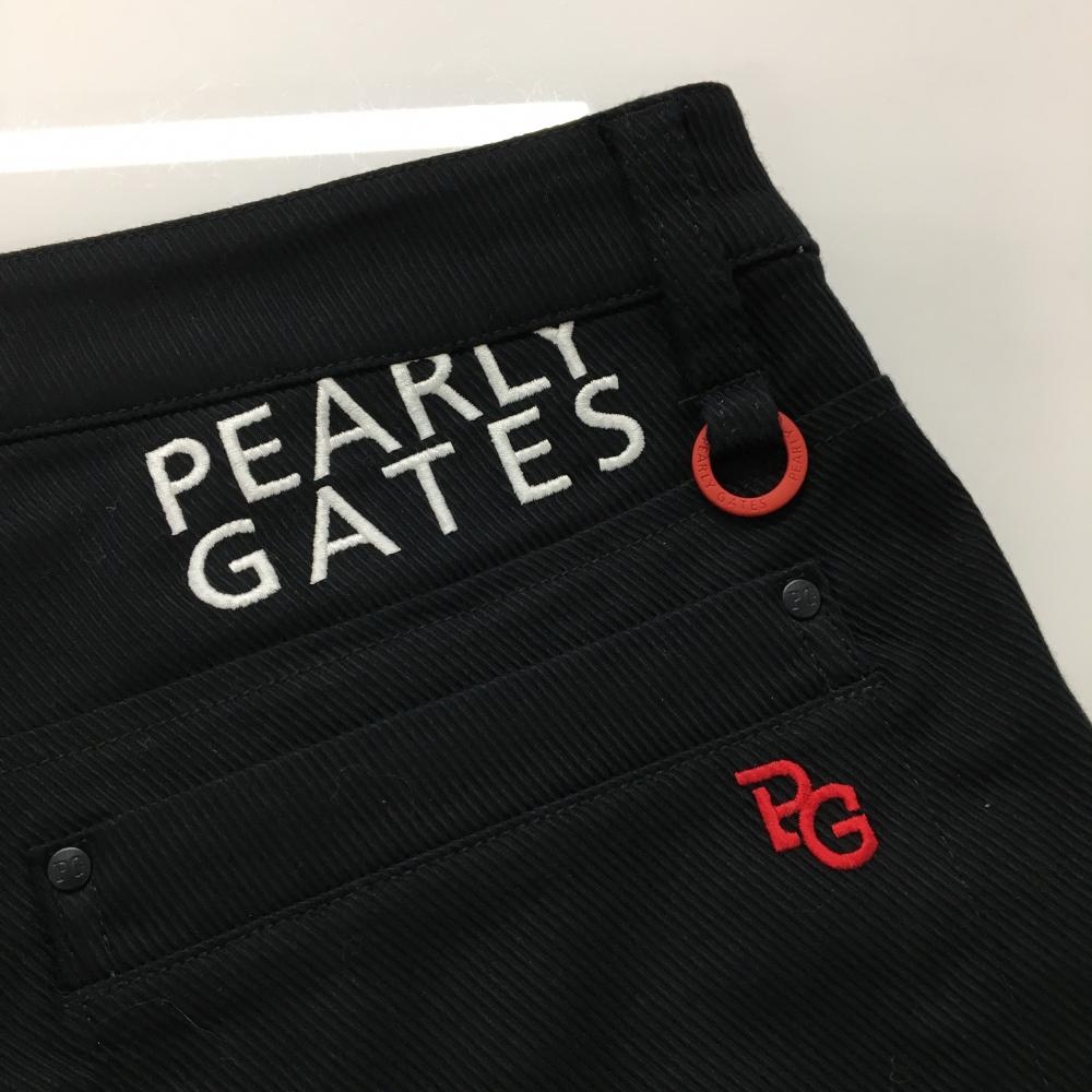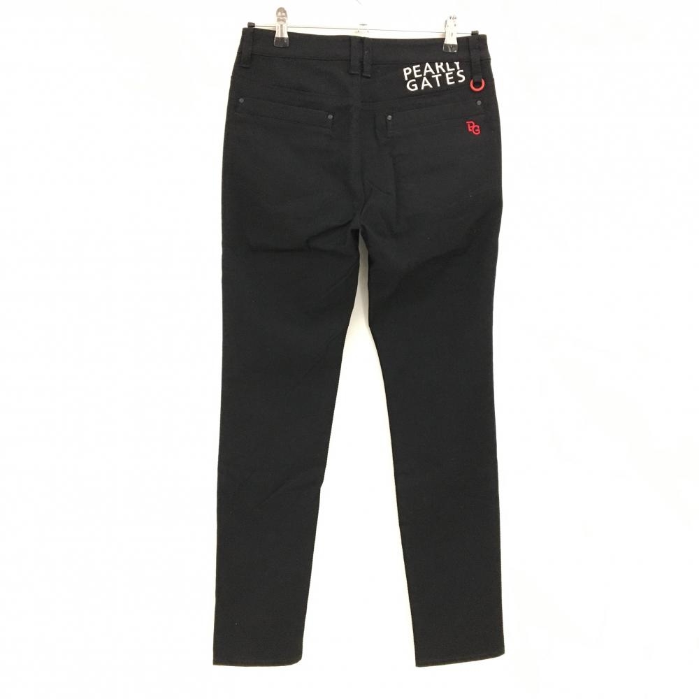 【美品】パーリーゲイツ パンツ 黒 ロゴレッド ティー装着可 ストレッチ レディース 1(M) ゴルフウェア 2023年モデル PEARLY GATES