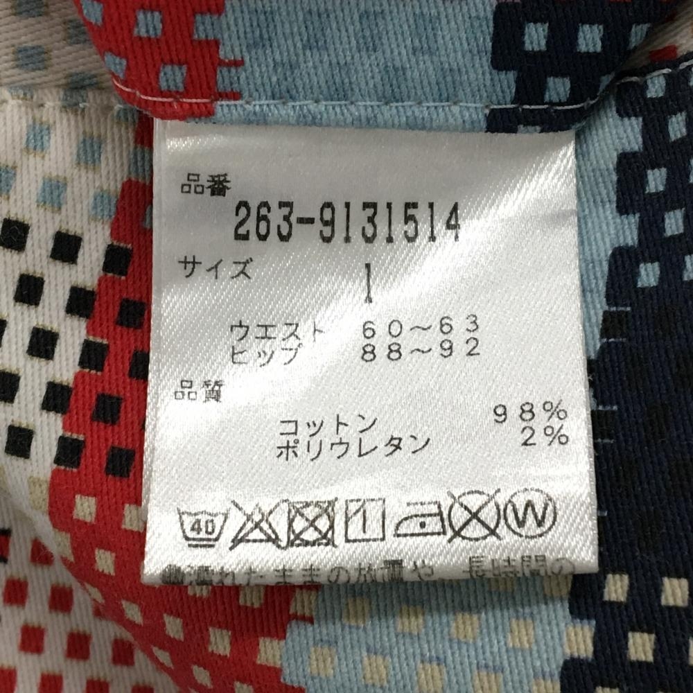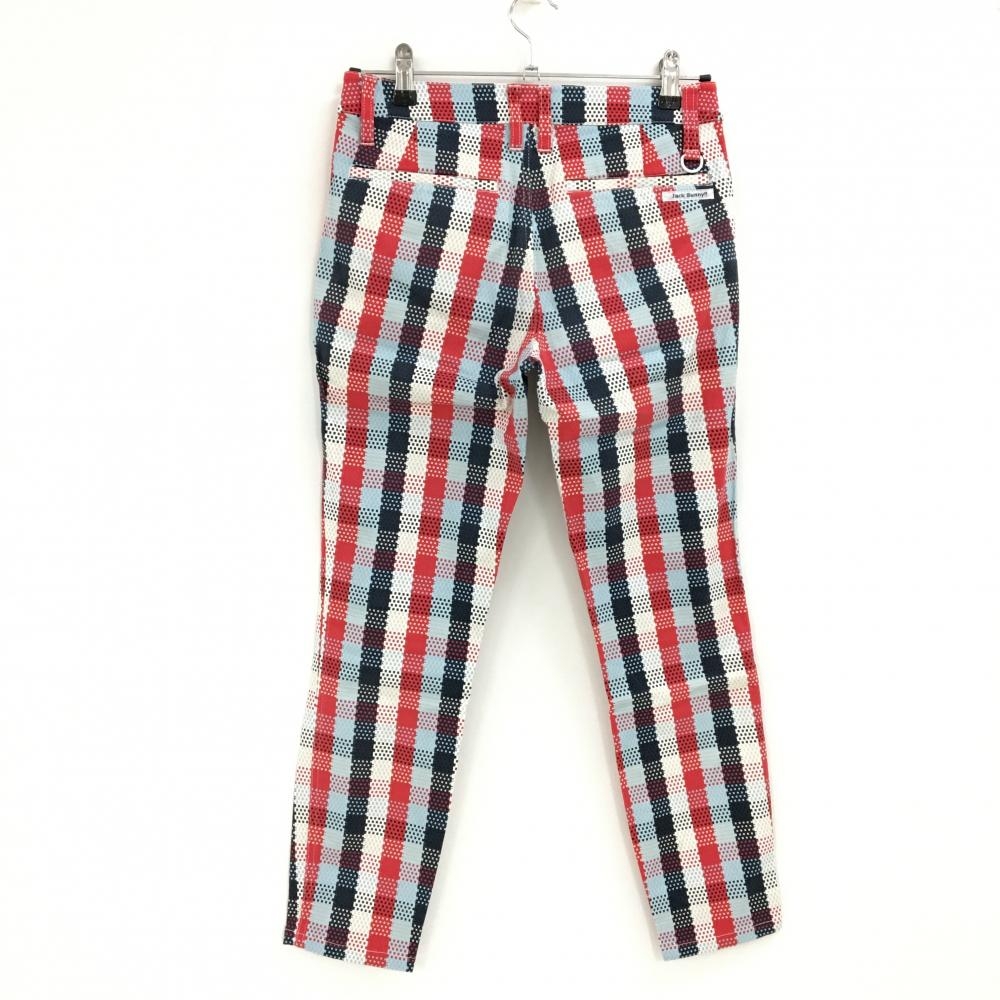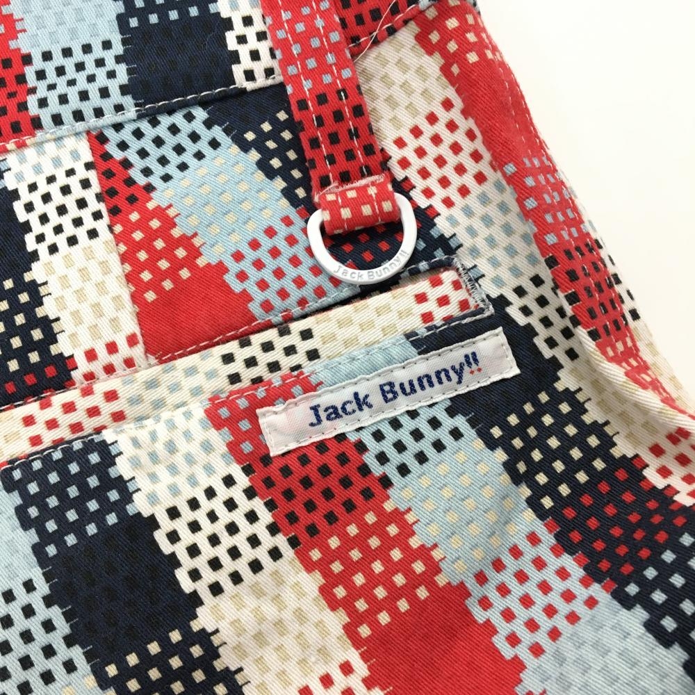 【美品】ジャックバニー パンツ 白×レッド チェック柄 バックロゴ レディース 1(M) ゴルフウェア Jack Bunny